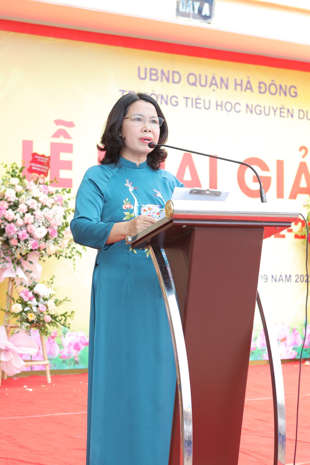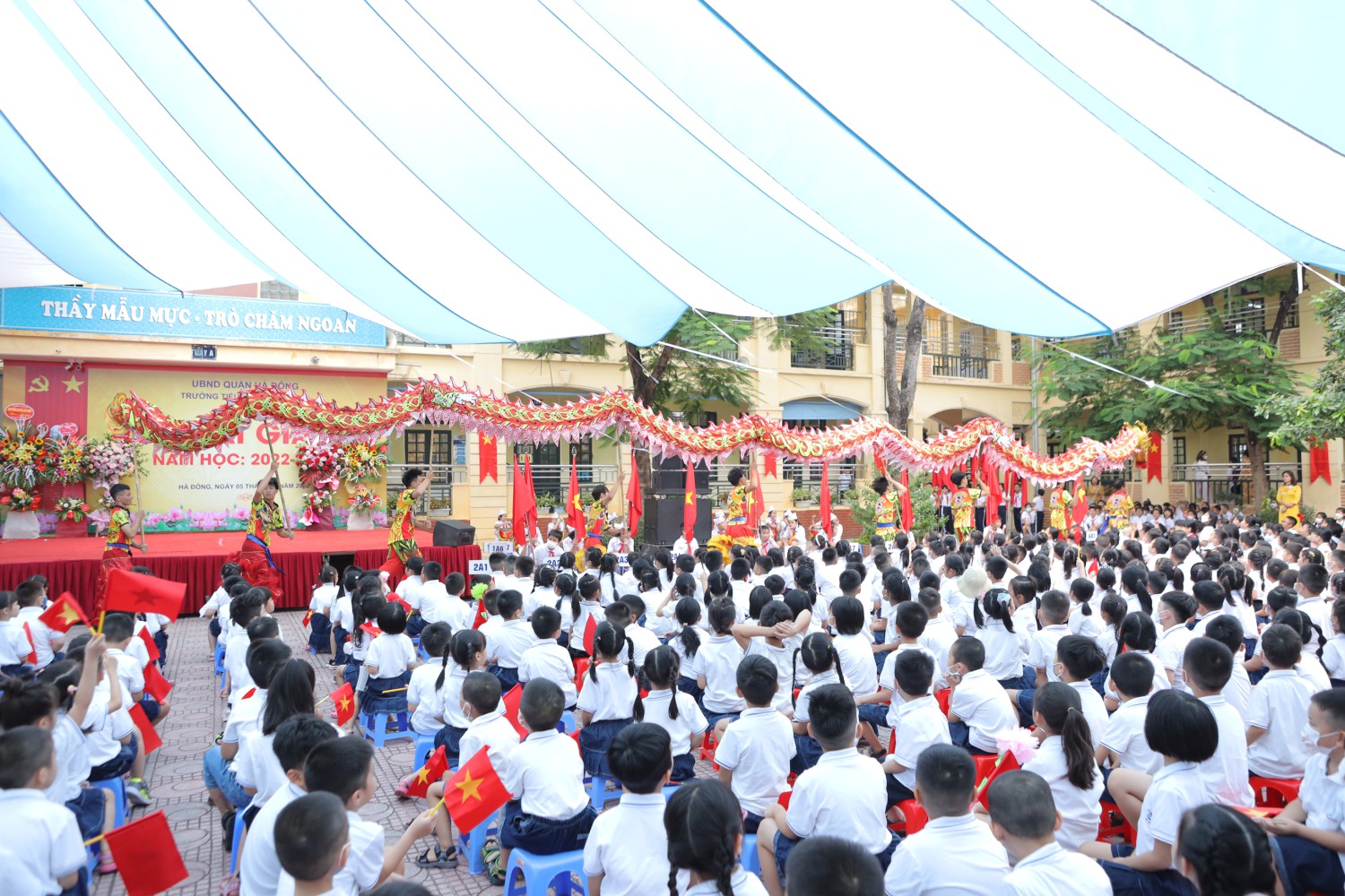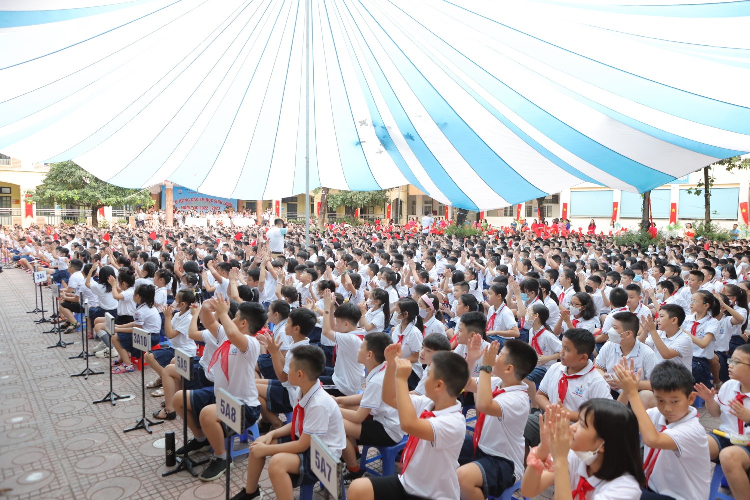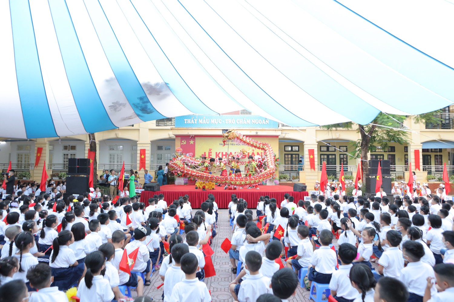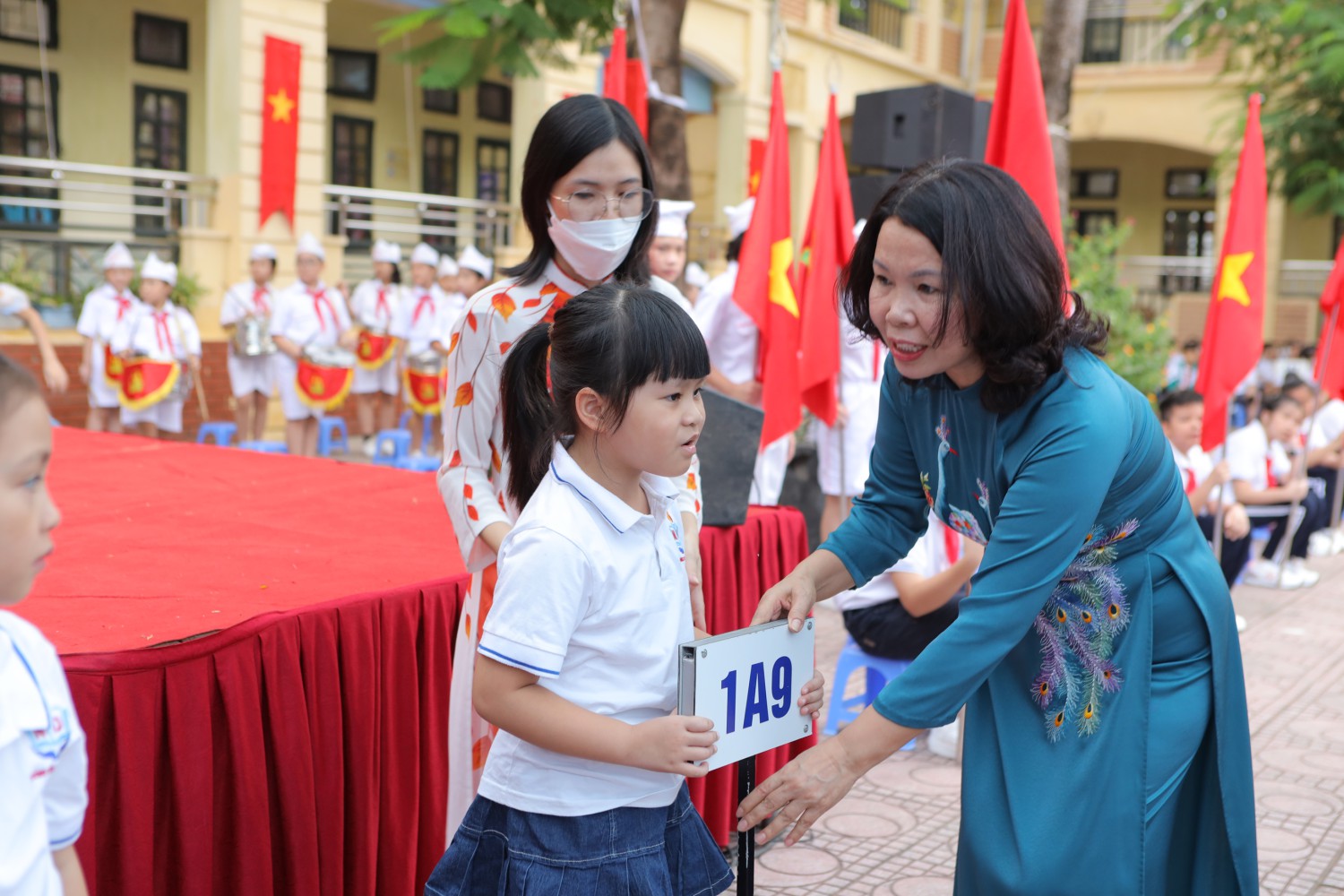 Cô giáo Ngô Thị Hồng Lương, Hiệu trưởng nhà trường chia sẻ: "Sau 2 năm, các con không được dự lễ khai giảng thì năm nay rất vui mừng khi dịch bệnh đã bị đẩy lùi và thầy trò lại nô nức, phấn khởi chuẩn bị cho năm học mới. Năm nay, để đáp ứng được nhu cầu dạy và học theo chương trình giáo dục phổ thông mới thì nhà trường đã phải giảm bớt số lớp 1 nhằm nâng cao chất lượng học tập cho các em học sinh".