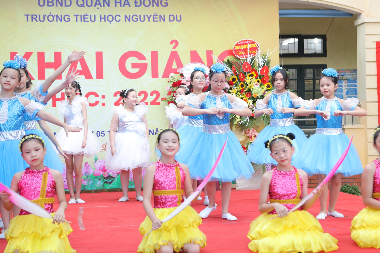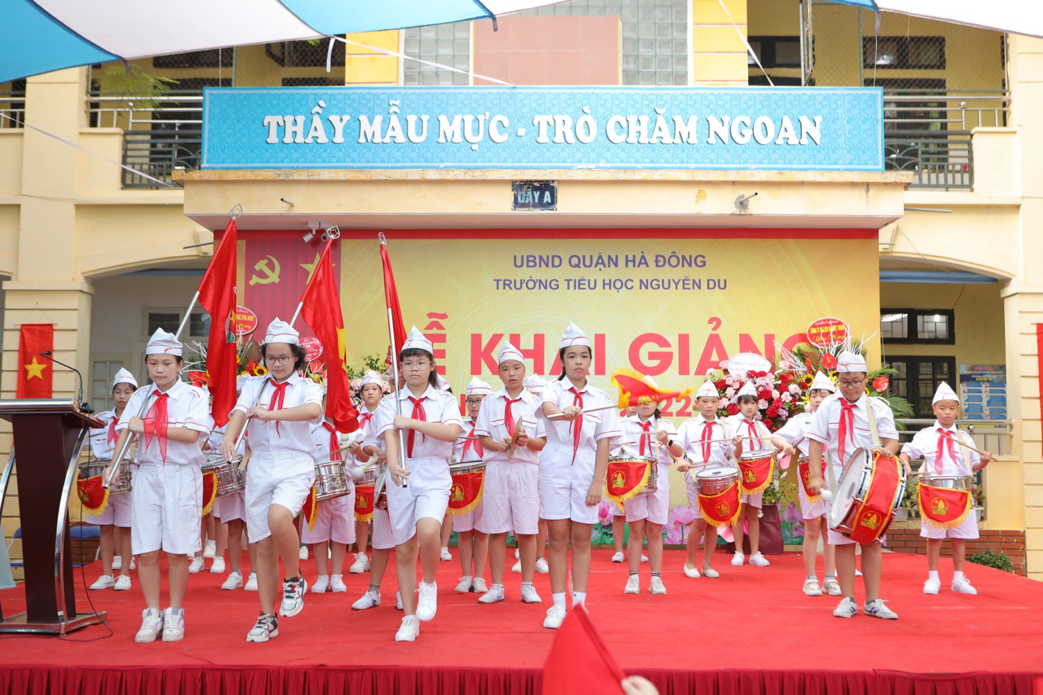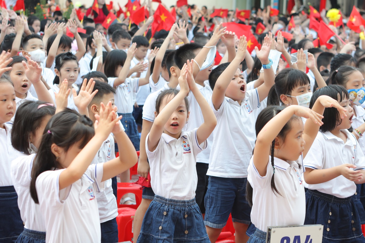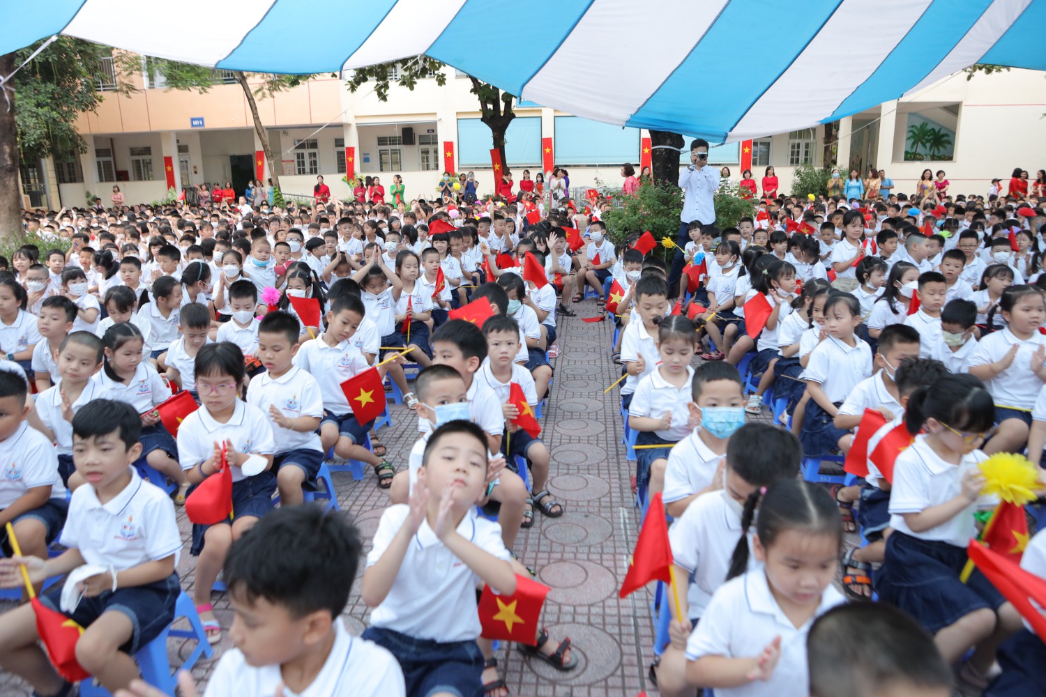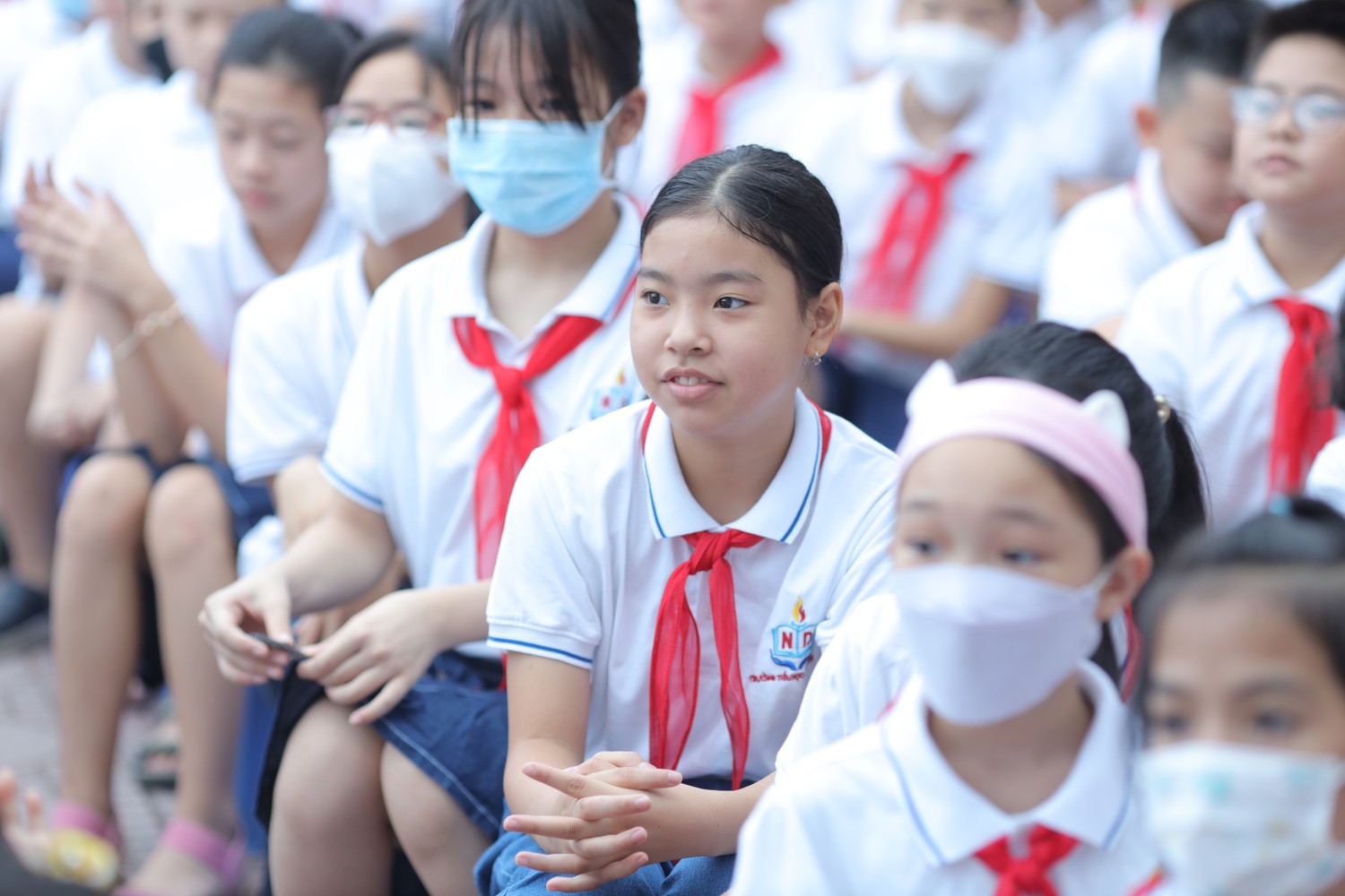 Sáng ngày 5/9, các em học sinh trường tiểu học Nguyễn Du tham dự lễ khai giảng năm học mới 2022 - 2023.