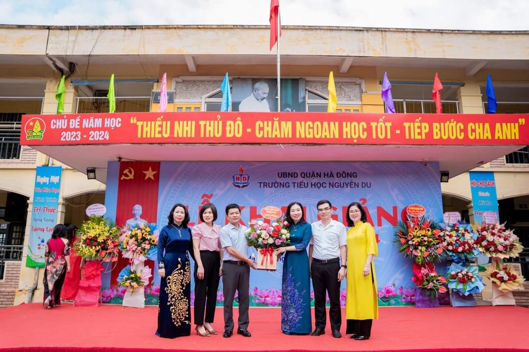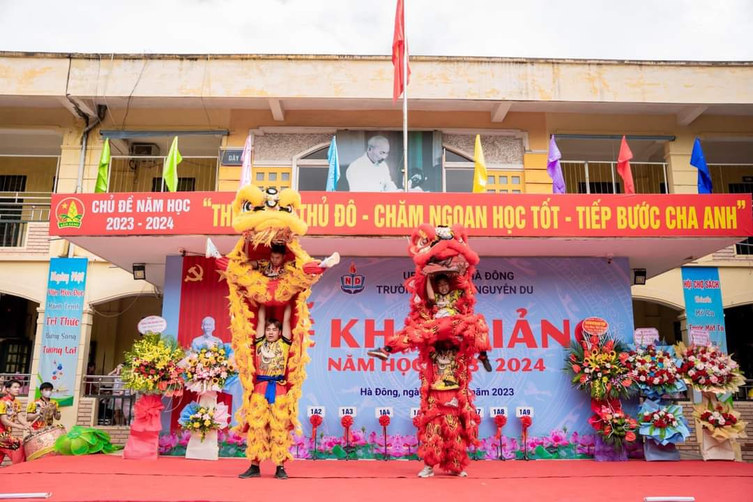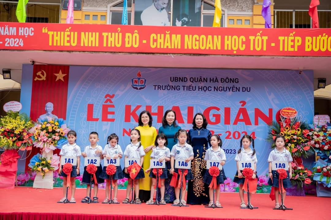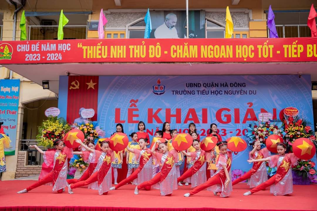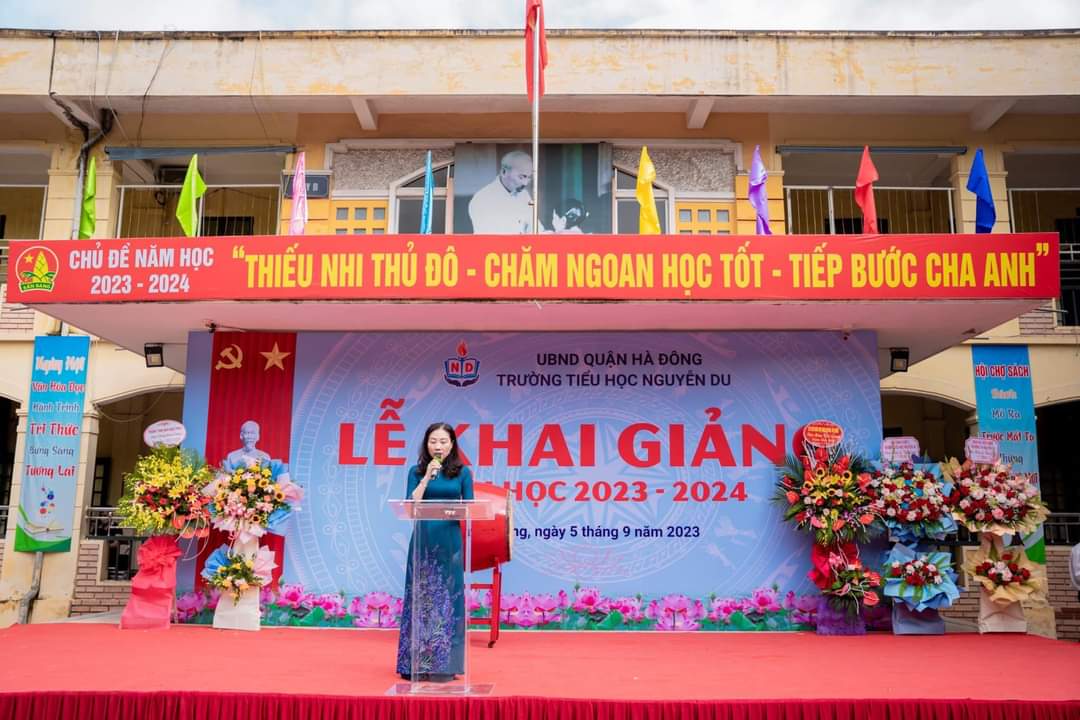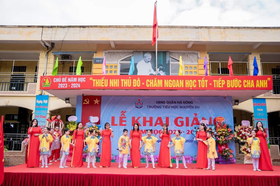 Hè qua đi một cách vội vàng, thu đã đến trong niềm háo hức mong chờ. Một năm học mới lại bắt đầu! Hòa chung với không khí tưng bừng của cả nước chào mừng kỷ niệm 78 năm Cách mạng tháng Tám và Quốc khánh 2/9, cùng với niềm hân hoan của ngày hội lớn - Ngày hội toàn dân đưa trẻ tới trường. Sáng nay, ngày 5/9/2023 trường tiểu học Nguyễn Du long trọng tổ chức lễ khai giảng năm học mới 2023 -2024. Đến dự buổi lễ khai giảng hôm nay, nhà trường vinh dự được đón tiếp các đồng chí đại diện cho cấp ủy Đảng chính quyền địa phương, các ban ngành đoàn thể, ban đại diện hội cha mẹ học sinh cùng toàn thể CBGVNV và hơn 2.300 em học sinh. Tiếng trống trường đã điểm, năm học mới đã bắt đầu. Chúc cho toàn thể CBGVNV nhà trường luôn mạnh khỏe, gặt hái được nhiều thành công. Chúc các em học sinh học giỏi, đoàn kết, chăm ngoan, góp phần xây dựng trường tiểu học Nguyễn Du ngày càng phát triển. Dưới đây là một số hình ảnh của buổi Lễ: