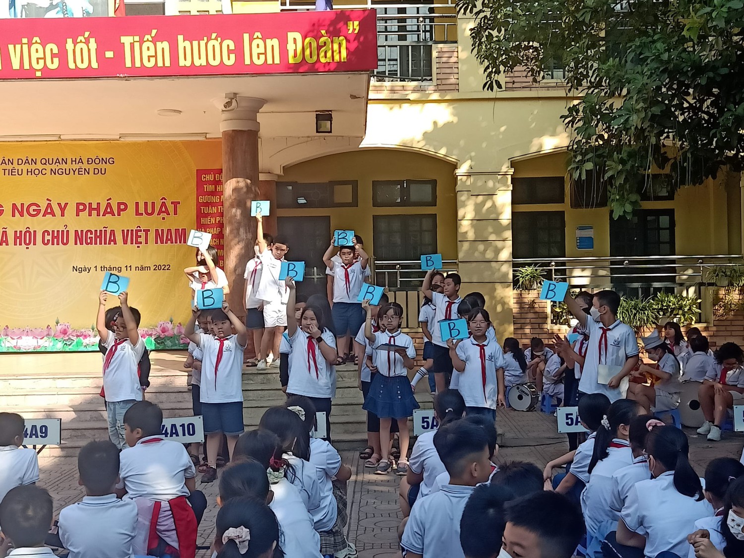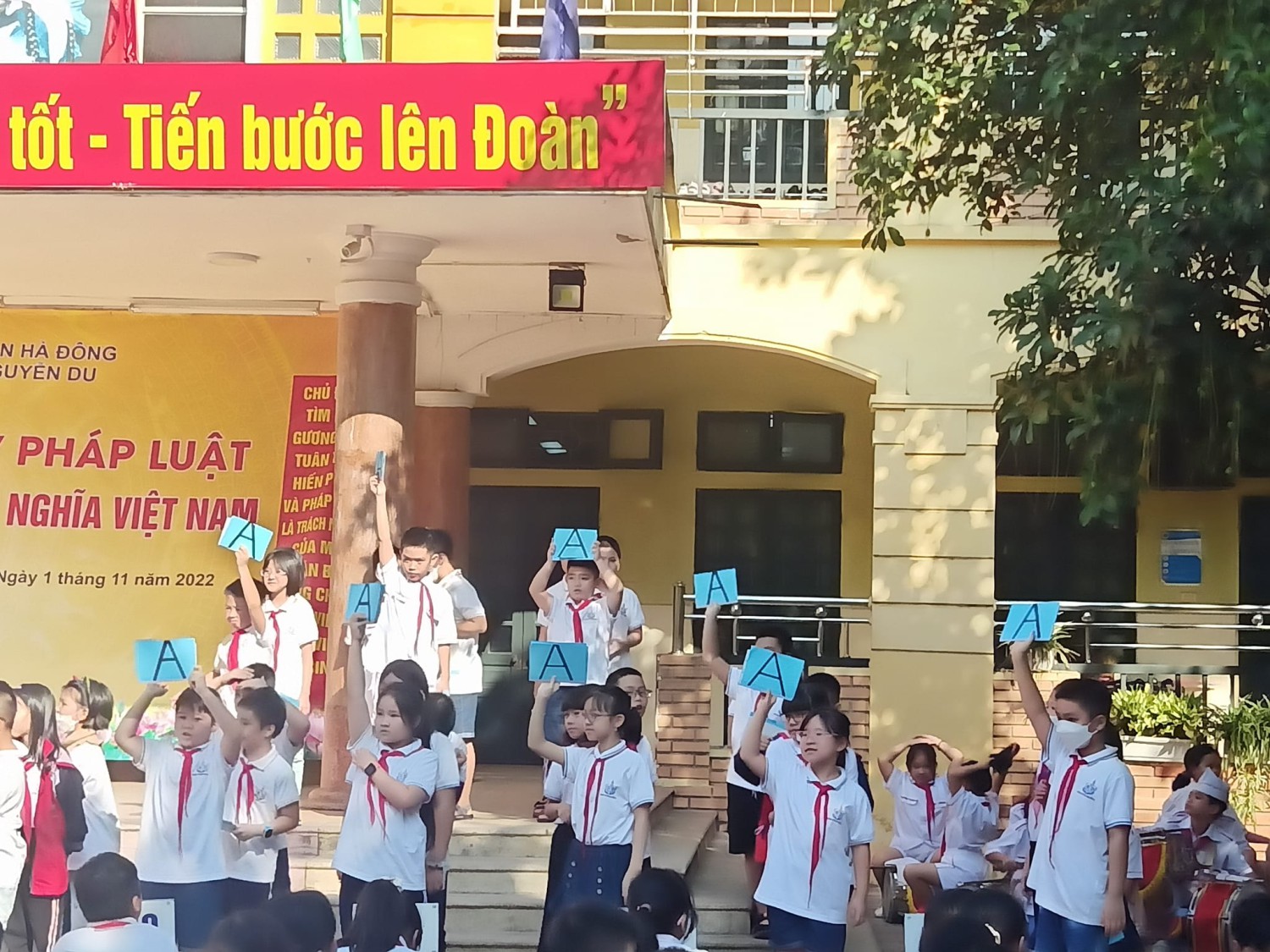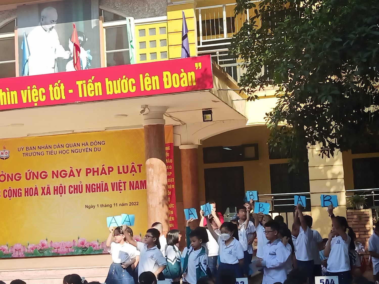 Sáng nay ngày 31/10/2022 trường tiểu học Nguyễn Du long trọng tổ chức buổi chuyên đề: "Hưởng ứng ngày pháp luật nước CHXHCN Việt Nam năm 2022". Tiết chuyên đề được sân khấu hóa dưới hình thức thi hỏi đáp trắc nghiệm. Các bạn học sinh vô cùng háo hức, phấn khởi và rất xuất sắc trả lời đúng các câu hỏi mà BTC đưa ra. Thông qua phần thi các em đã nắm rõ và hiểu được một số điều luật quan trọng trong các bộ luật: luật an toàn giao thông, luật an ninh mạng, luật Bảo vệ môi trường, Luật trẻ em, luật phòng chống tác hại của thuốc lá. Sau khi hiểu về các bộ luật các em học sinh cũng hứa sẽ nghiêm chỉnh chấp hành các luật lệ mà pháp luật nước CHXHCN Việt Nam đã đề ra. Xin chúc các em luôn chăm ngoan học giỏi để trở thành những công dân có ích cho xã hội.