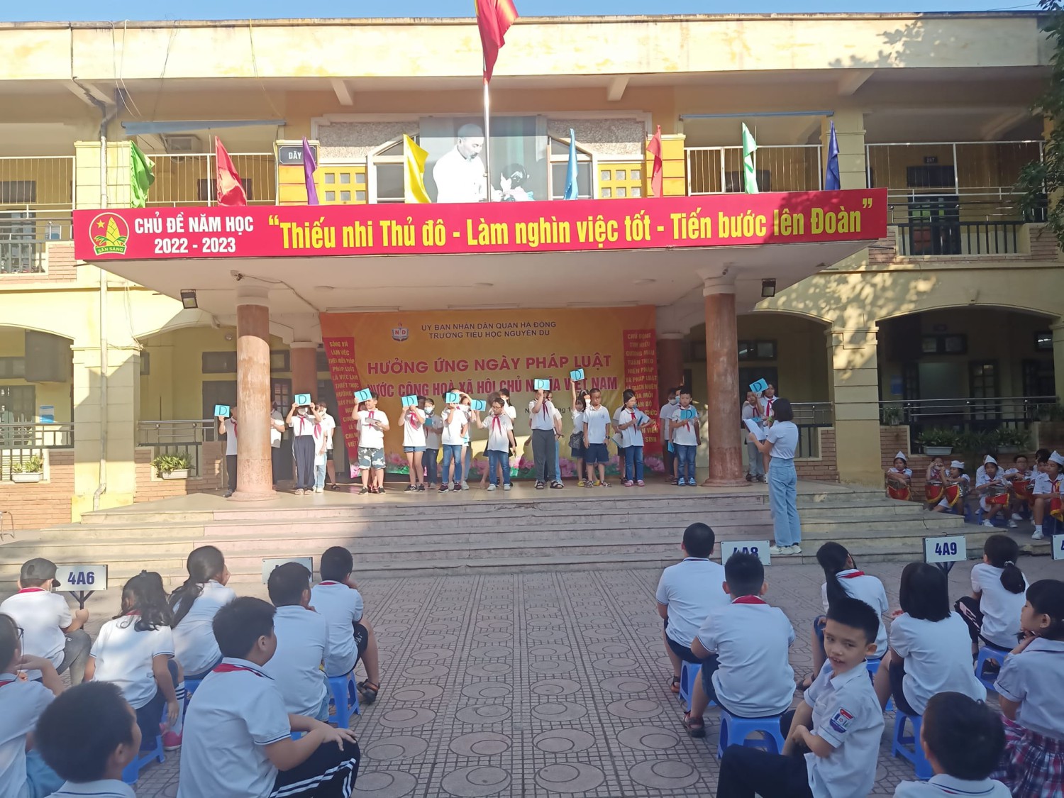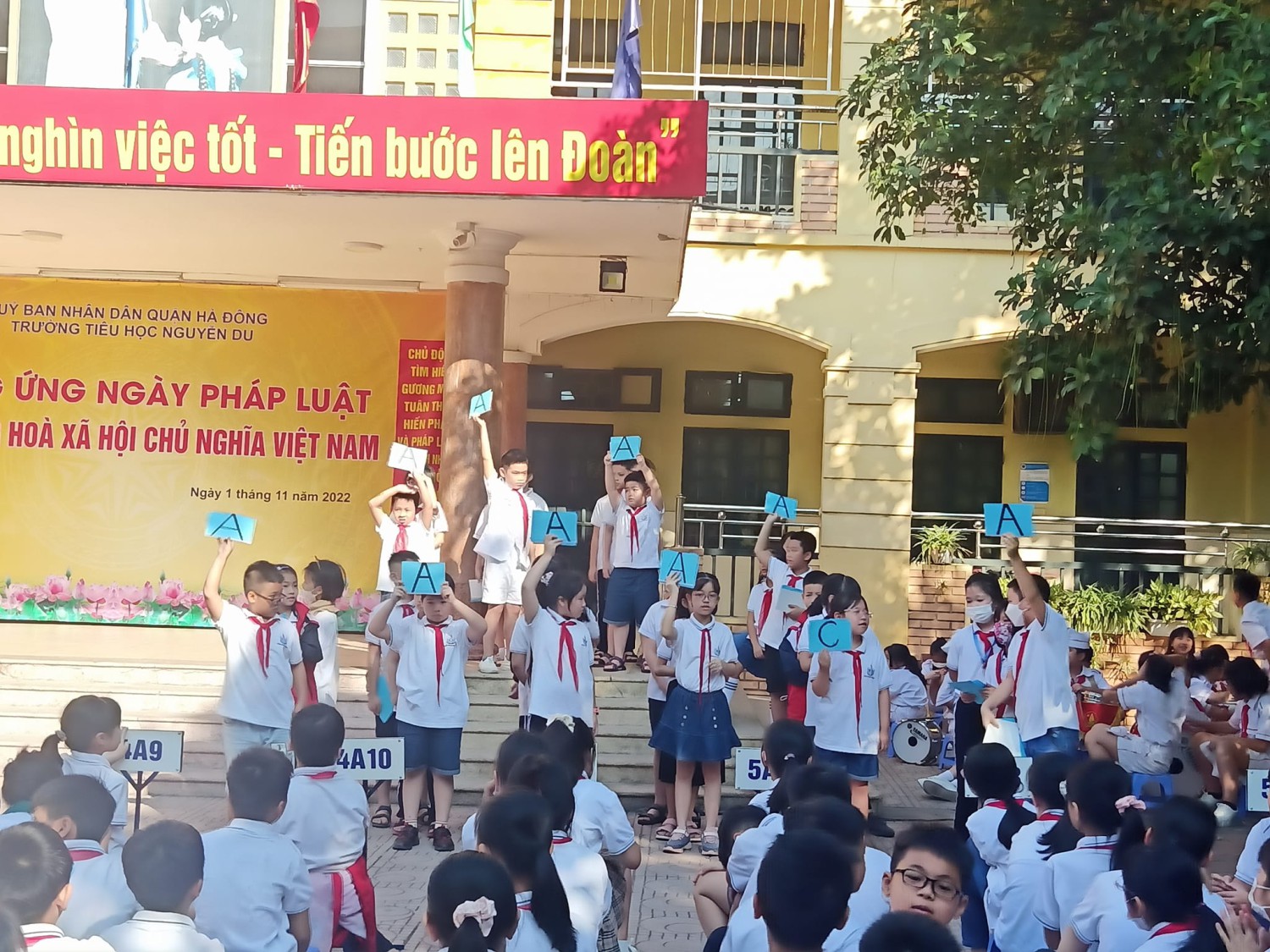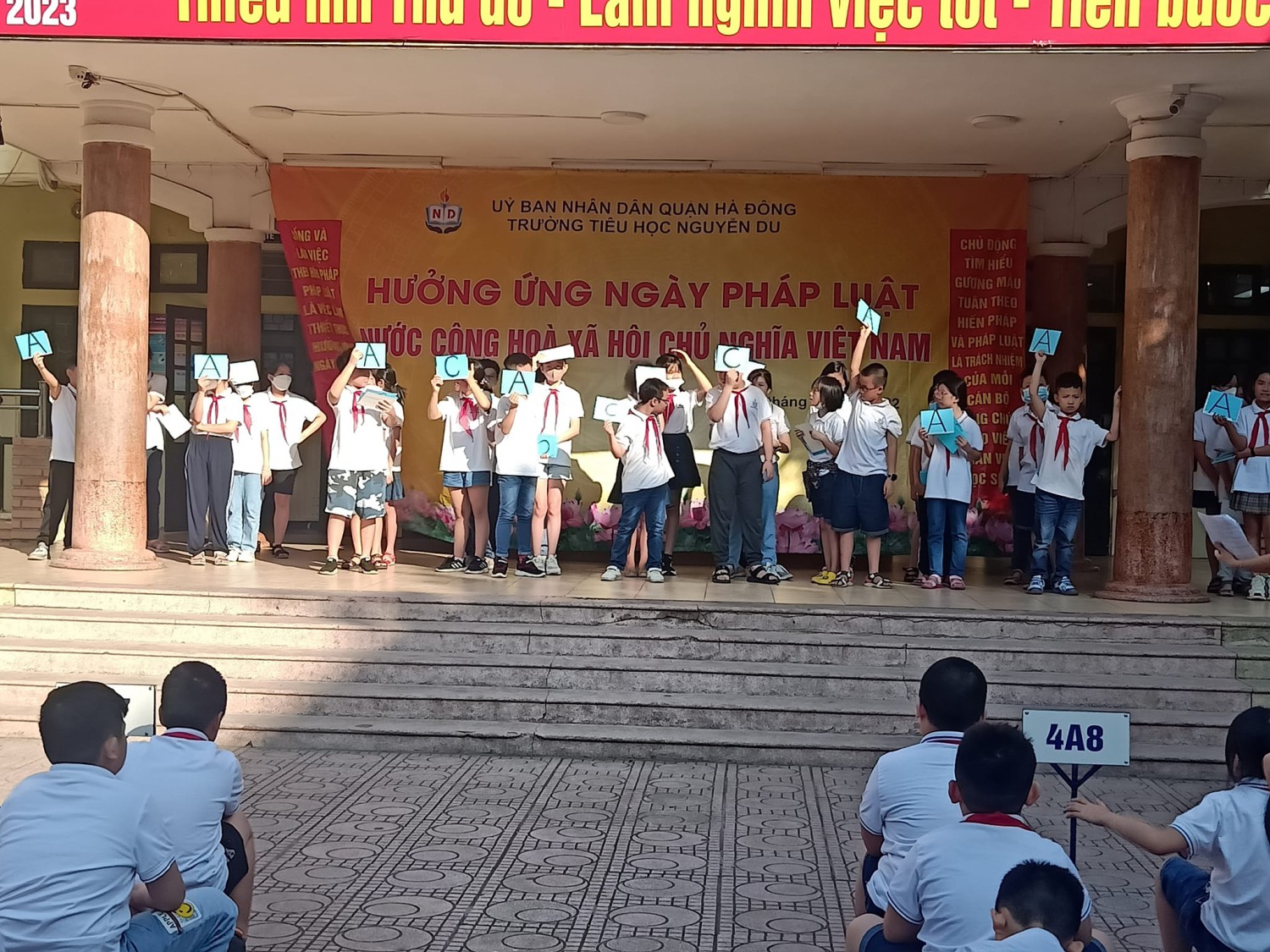 Sáng nay ngày 31/10/2022 trường tiểu học Nguyễn Du long trọng tổ chức buổi chuyên đề: "Hưởng ứng ngày pháp luật nước CHXHCN Việt Nam năm 2022". Tiết chuyên đề được sân khấu hóa dưới hình thức thi hỏi đáp trắc nghiệm. Các bạn học sinh vô cùng háo hức, phấn khởi và rất xuất sắc trả lời đúng các câu hỏi mà BTC đưa ra. Thông qua phần thi các em đã nắm rõ và hiểu được một số điều luật quan trọng trong các bộ luật: luật an toàn giao thông, luật an ninh mạng, luật Bảo vệ môi trường, Luật trẻ em, luật phòng chống tác hại của thuốc lá. Sau khi hiểu về các bộ luật các em học sinh cũng hứa sẽ nghiêm chỉnh chấp hành các luật lệ mà pháp luật nước CHXHCN Việt Nam đã đề ra. Xin chúc các em luôn chăm ngoan học giỏi để trở thành những công dân có ích cho xã hội.