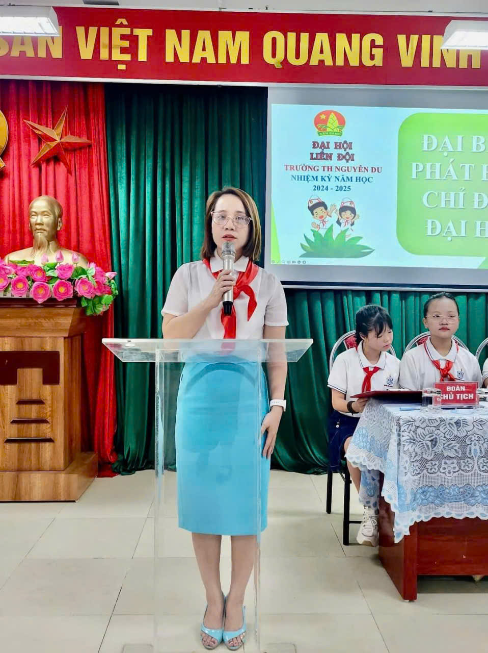 👏👏 Về dự Đại hội có chị Tạ Thị Tâm - Bí thư Đoàn TNCS HCM phường Văn Quán, cùng các thầy cô giáo đại diện cấp ủy, Ban giám hiệu, chi đoàn nhà trường. Đặc biệt là sự có mặt của 100 đội viên tiêu biểu xuất sắc được bầu chọn từ 20 Chi đội, đại diện toàn Liên đội đã về dự Đại hội.