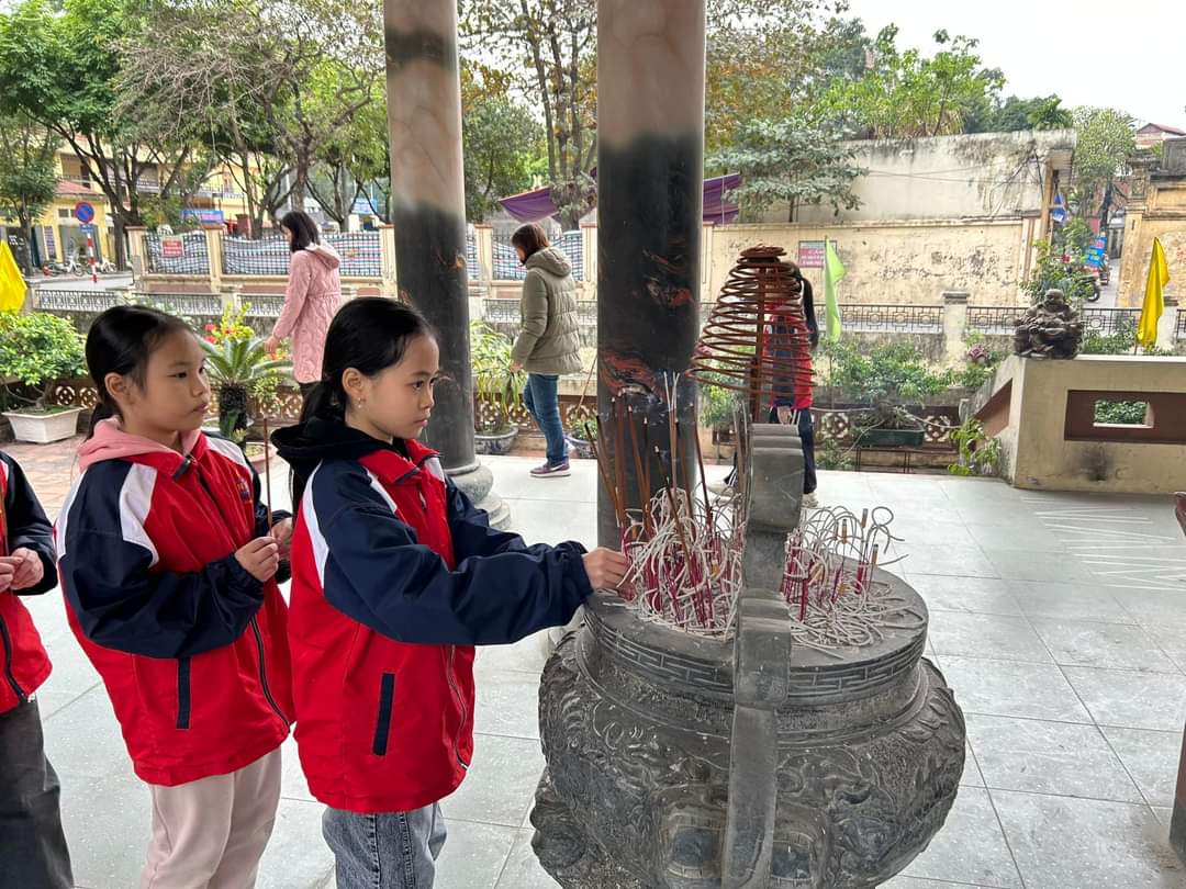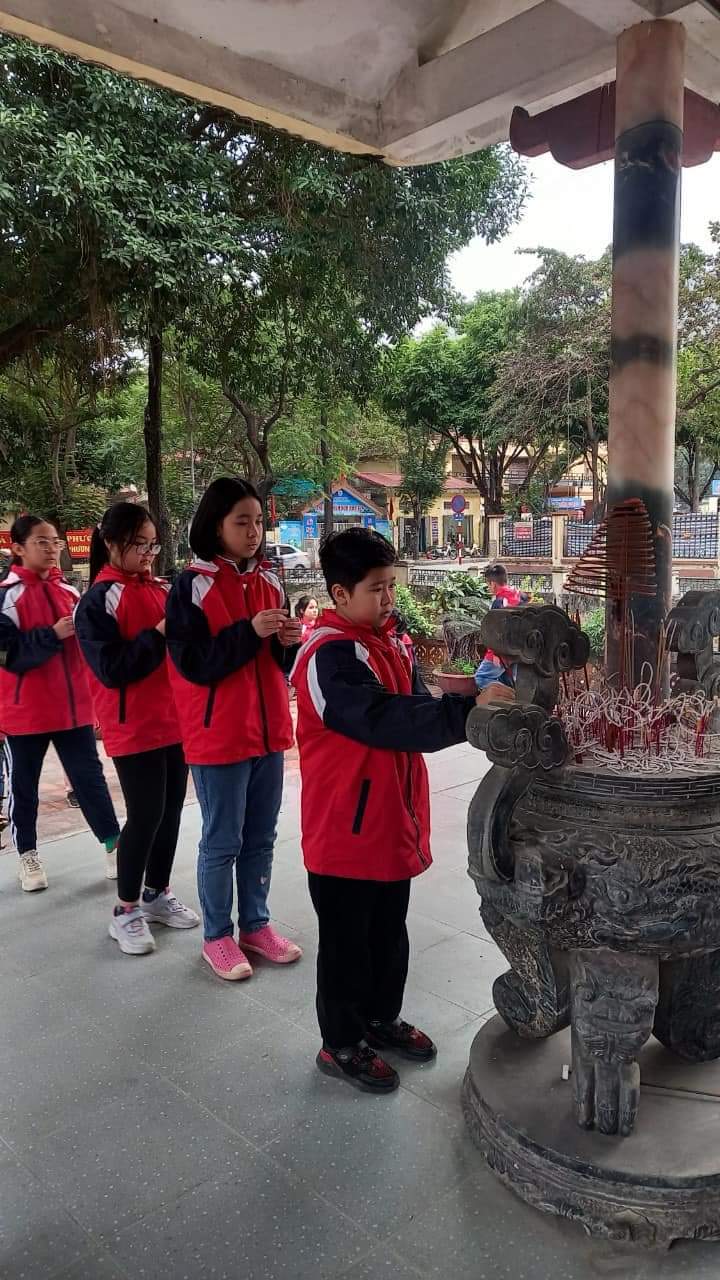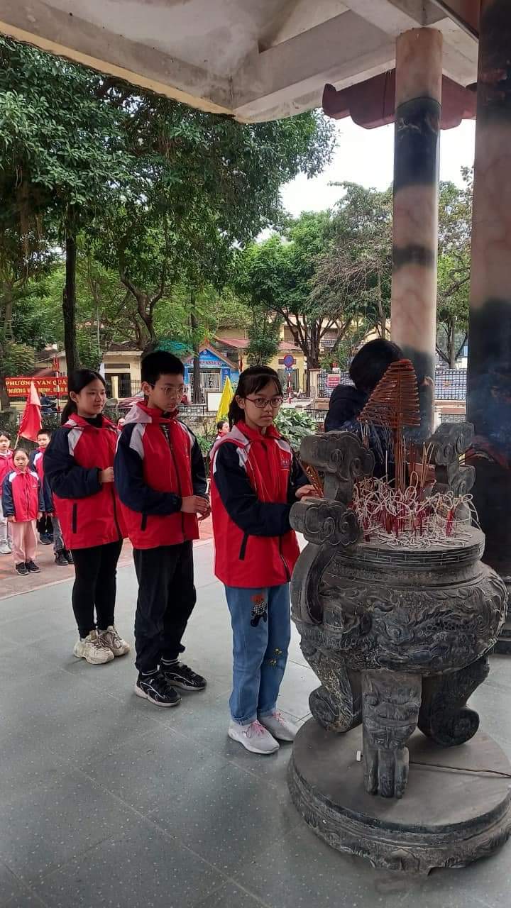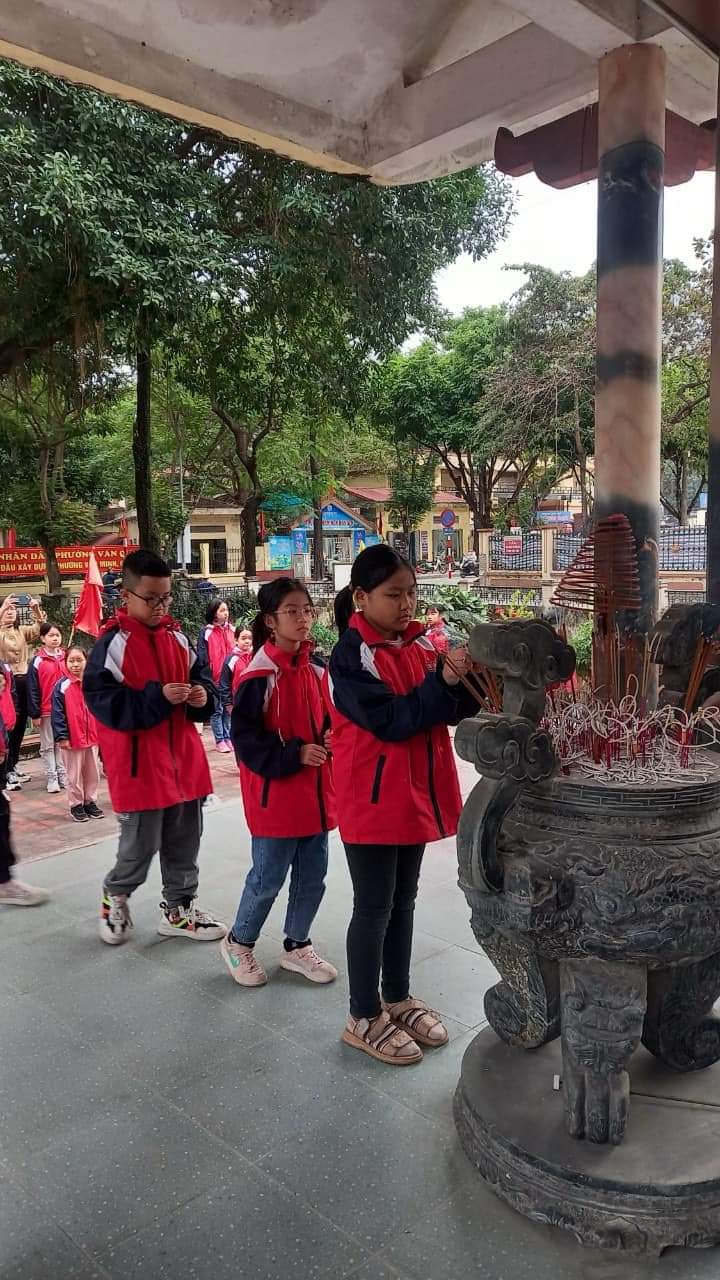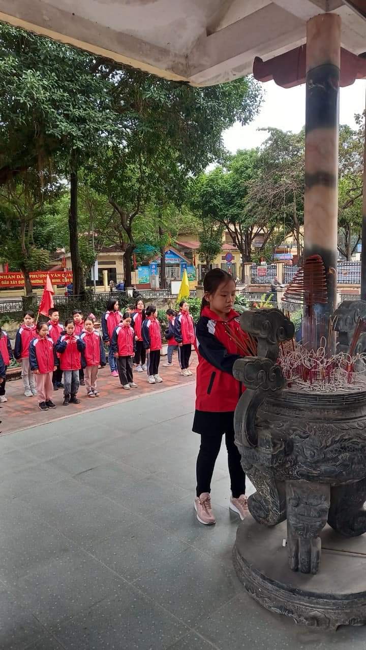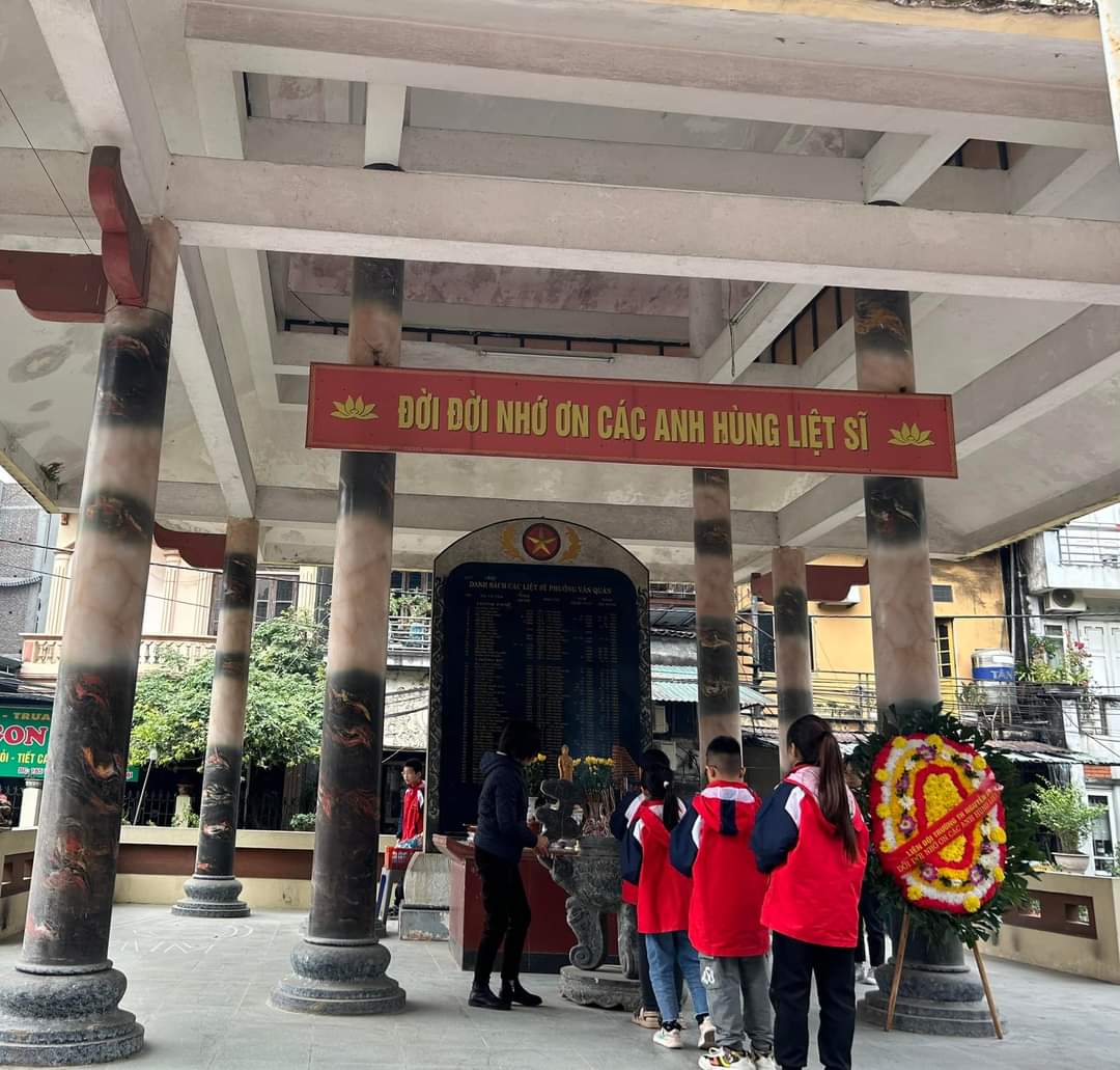Kỷ niệm 79 năm Ngày thành lập Quân đội Nhân dân Việt Nam (22/12/1944 - 22/12/2023) Chiều ngày 21/12/2023 Trường Tiểu học Nguyễn Du đã tổ chức dâng hương tại Bia tưởng niệm các anh hùng liệt sỹ phường Văn Quán. Trong không khí trang nghiêm, đại diện Ban giám hiệu, các thầy cô giáo cùng 35 em đội viên tiêu biểu khối 4, 5 đã kính cẩn đặt vòng hoa, dâng nén hương thơm bày tỏ lòng thành kính, sự biết ơn vô hạn với những anh hùng đã không tiếc xương máu và tuổi thanh xuân của mình, hy sinh vì nền độc lập, tự do của Tổ quốc, vì cuộc sống ấm no, hạnh phúc của Nhân dân.