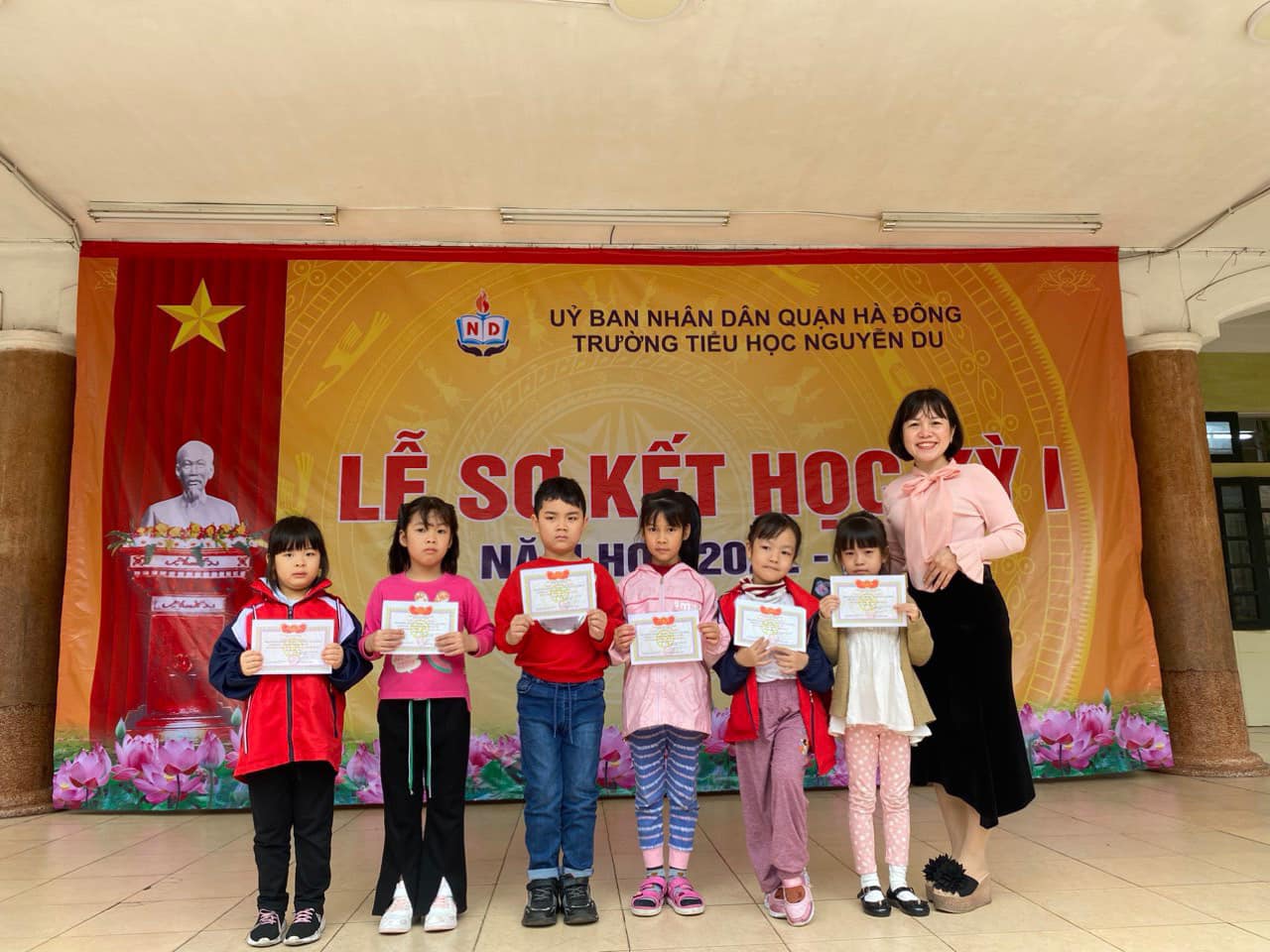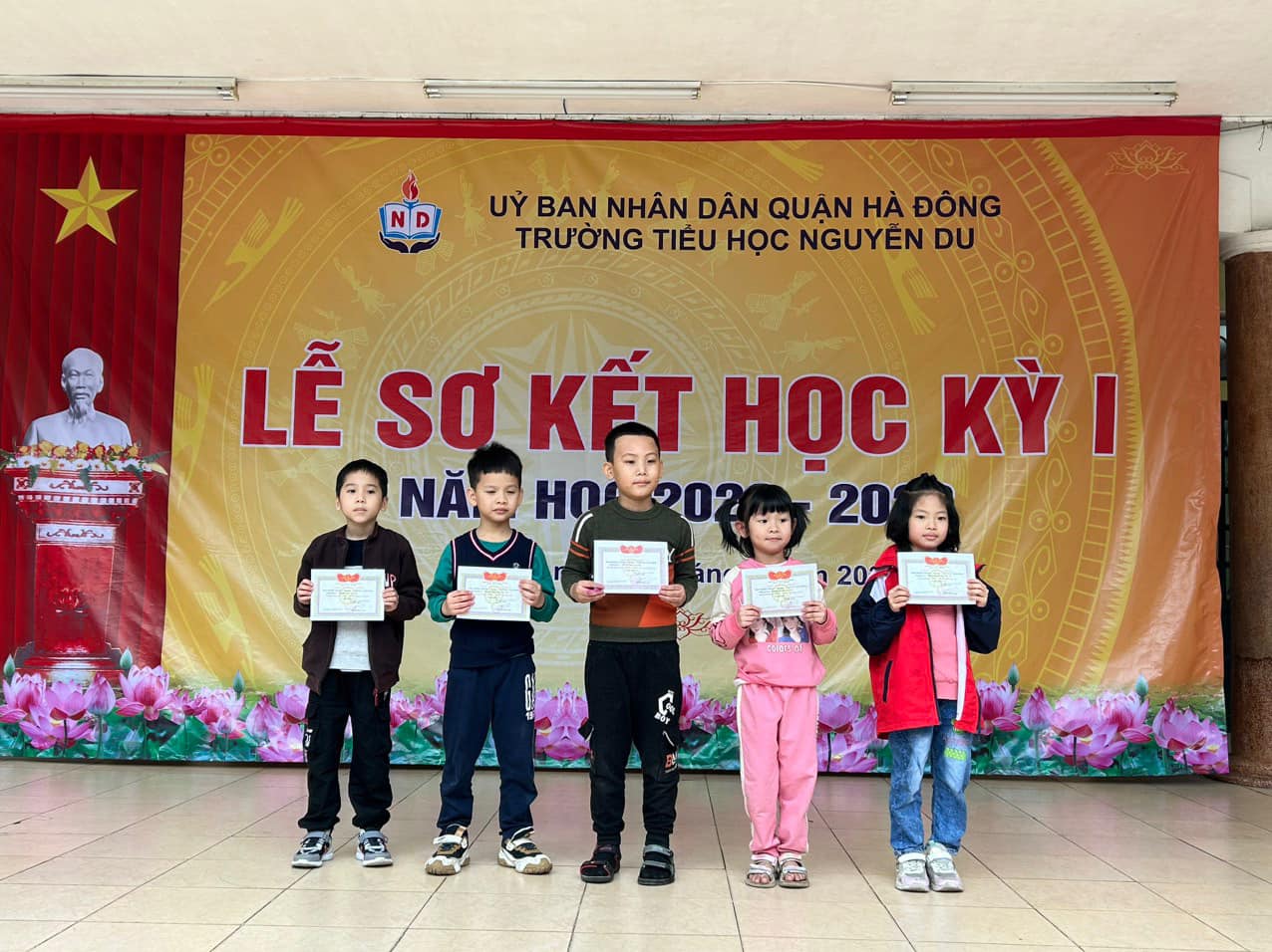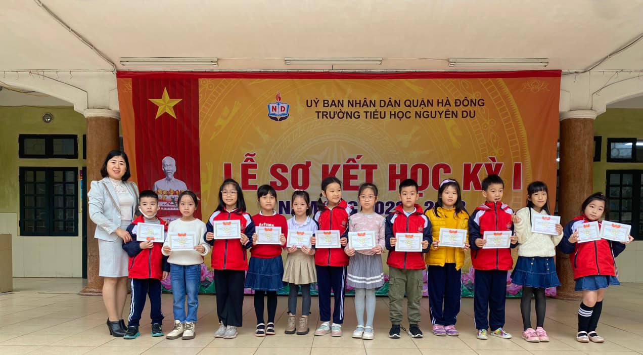 Trong học kỳ I cô và trò trường tiểu học Nguyễn Du đã không ngừng nỗ lực phấn đấu để thi đua dạy tốt, học tốt, giành được nhiều thành tích cao trong giảng dạy và học tập. Tại buổi sơ kết học kỳ I, nhà trường đã tuyên dương những thành tích nổi bật của các thầy cô giáo và các em học sinh. Đồng thời trao giấy chứng nhận cho các em đã đạt giải trong các cuộc thi do nhà trường tổ chức.