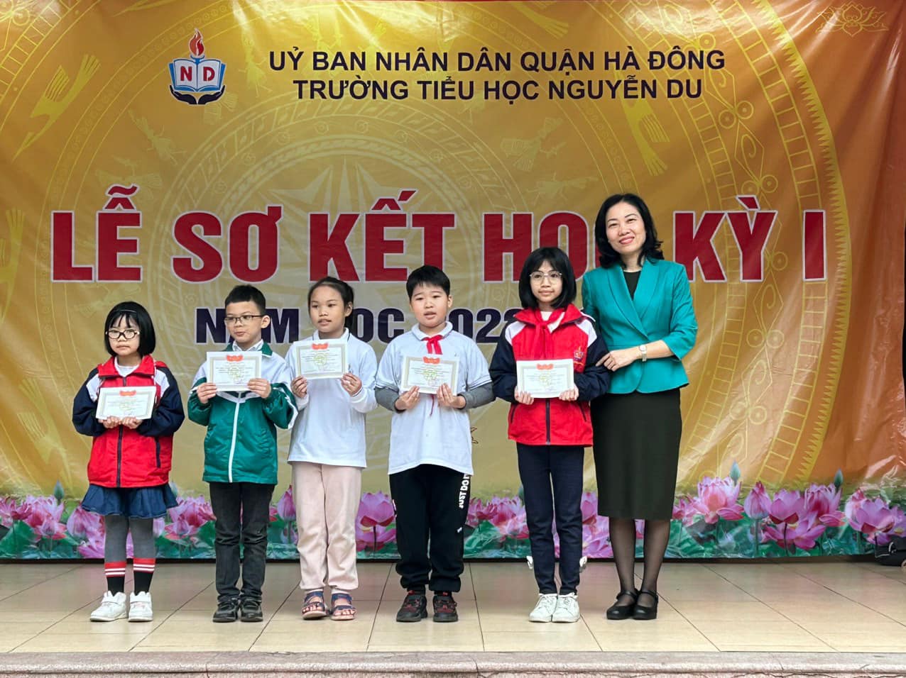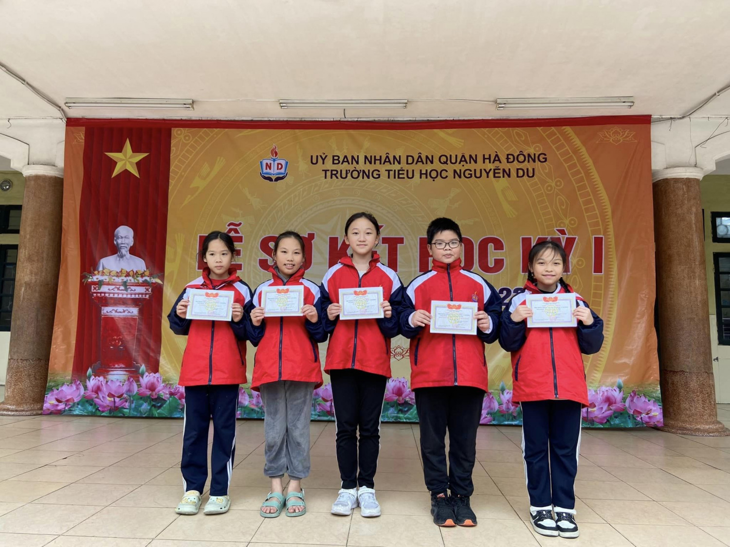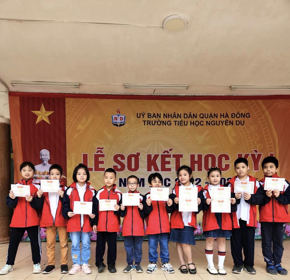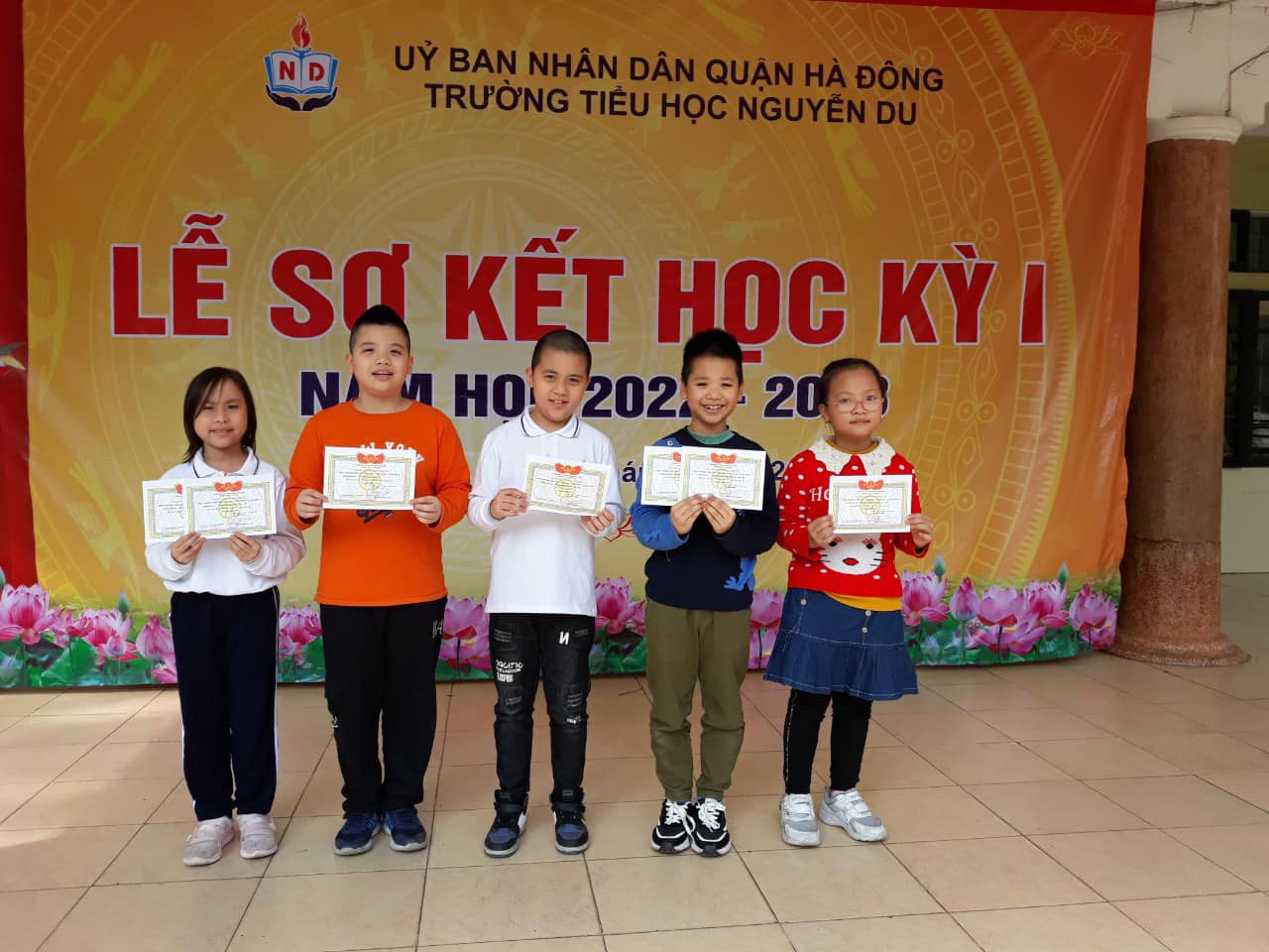 Trong học kỳ I cô và trò trường tiểu học Nguyễn Du đã không ngừng nỗ lực phấn đấu để thi đua dạy tốt, học tốt, giành được nhiều thành tích cao trong giảng dạy và học tập. Tại buổi sơ kết học kỳ I, nhà trường đã tuyên dương những thành tích nổi bật của các thầy cô giáo và các em học sinh. Đồng thời trao giấy chứng nhận cho các em đã đạt giải trong các cuộc thi do nhà trường tổ chức.