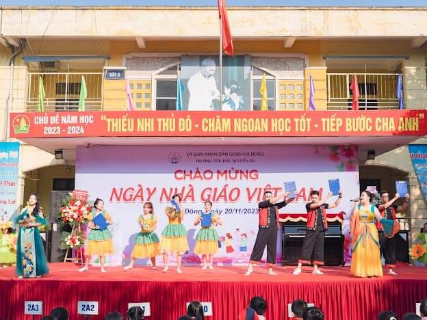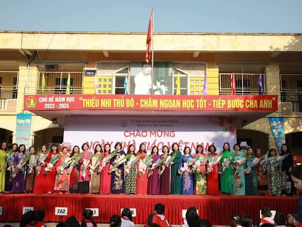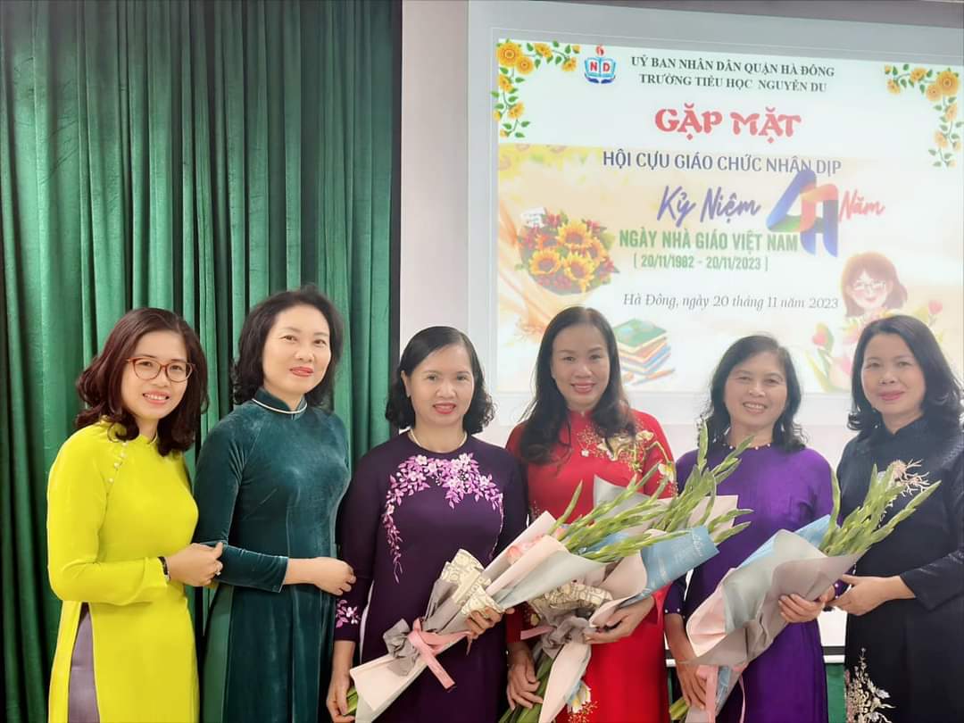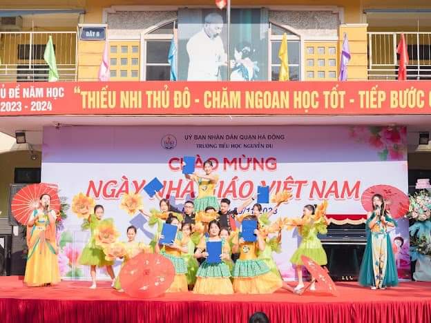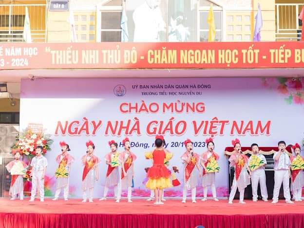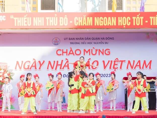 Hoà chung không khí vui tươi, phấn khởi của cả nước hướng về ngày nhà giáo Việt Nam. Sáng ngày 20/11/2023 trường Tiểu học Nguyễn Du đã tổ chức thành công chương trình chào mừng 41 năm ngày nhà giáo Việt Nam (20/11/1982 - 20/11/2023) và tổng kết các hoạt động chào mừng. Đến dự và động viên cô trò, nhà trường rất vui mừng được đón các đồng chí đại biểu đại diện Đảng uỷ, UBND Phường Văn Quán; các nhà giáo nguyên là Hiệu trưởng, Phó hiệu trưởng qua các thời kỳ, cùng các nhà giáo đã nghỉ hưu; và các ông bà trong ban đại diện Hội CMHS. Buổi Kỷ niệm ngày Nhà giáo Việt Nam 20/11 là dịp để ôn lại những truyền thống vẻ vang, bày tỏ sự tri ân và truyền thống “Tôn sư trọng đạo” đến các thế hệ nhà giáo của Nhà trường, đồng thời vinh danh những đóng góp của các thầy cô trong công tác giảng dạy. Xin kính chúc các thầy cô luôn mạnh khỏe, hạnh phúc, năng động, sáng tạo, cống hiến nhiều hơn cho sự nghiệp trồng người. Dưới đây là một số hình ảnh tại buổi Kỷ niệm 41 năm ngày Nhà giáo Việt Nam 20/11.