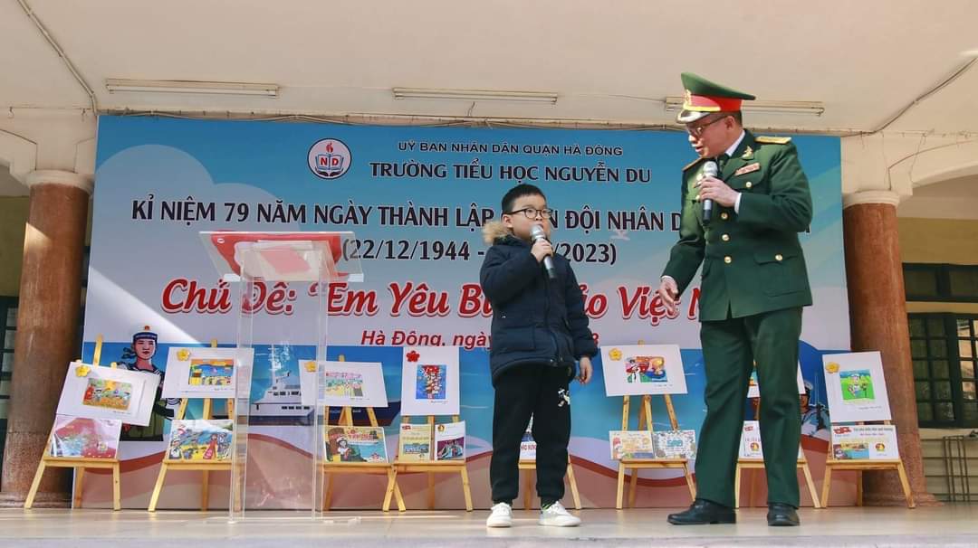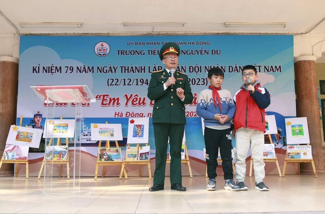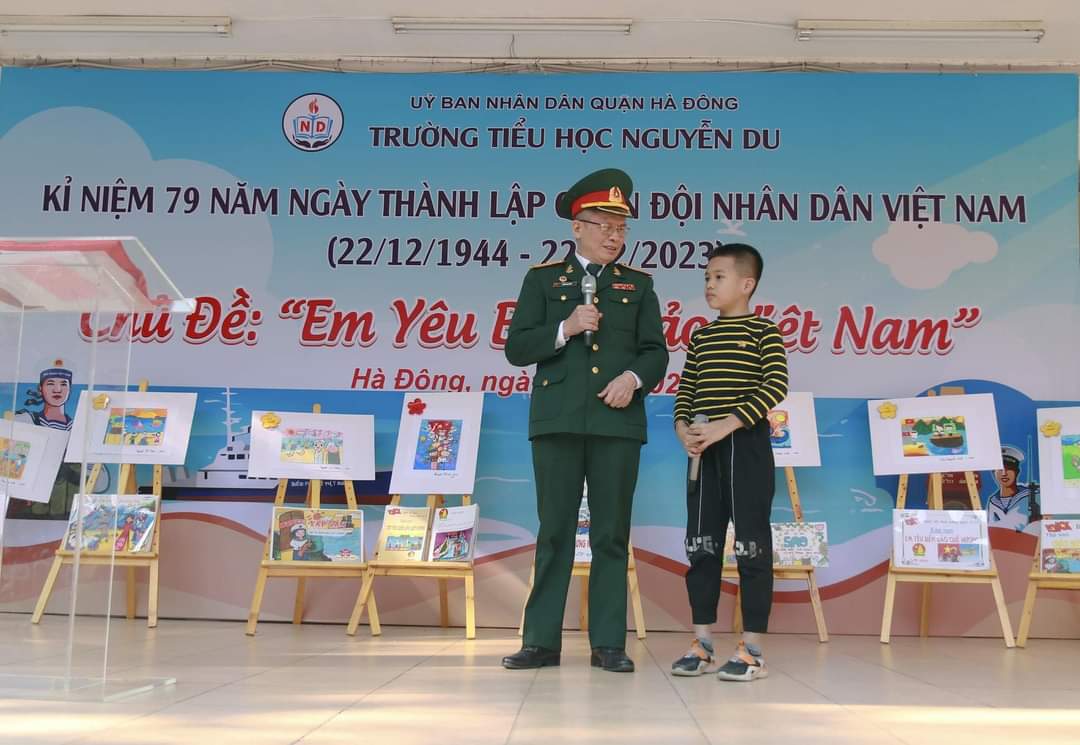 Chiều ngày 22/12/2023 Trường Tiểu học Nguyễn Du đã phối hợp với Hội cựu chiến binh Quận Hà Đông, Hội cựu chiến binh phường Văn Quán tổ chức thành công chương trình Giáo dục truyền thống nhân dịp kỷ niệm 79 năm ngày thành lập Quân đội nhân dân Việt Nam với chủ đề “Em yêu biển đảo Việt Nam”.