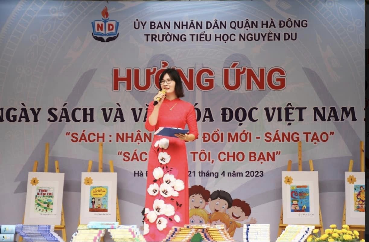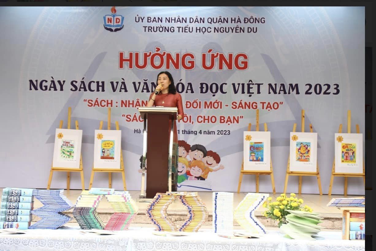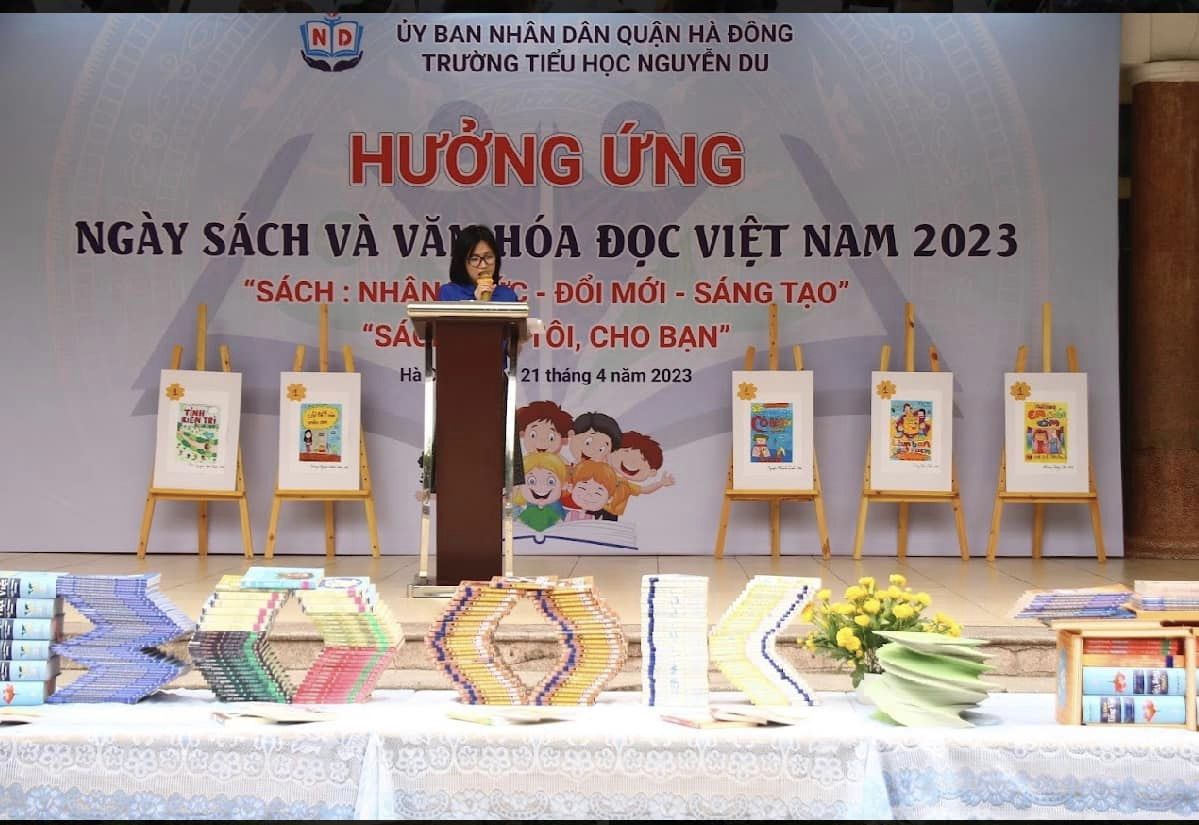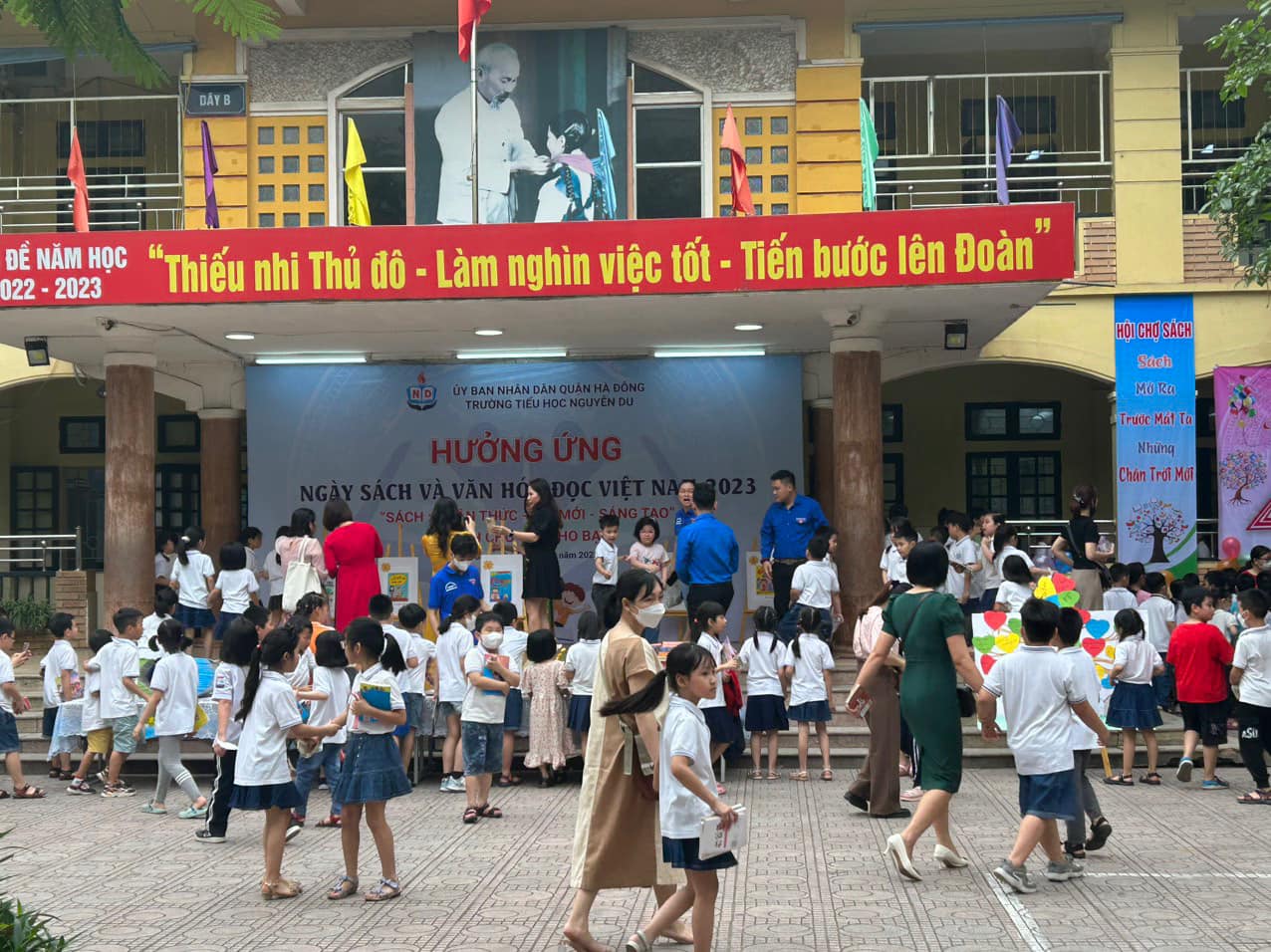 Với những ý nghĩa đó, sáng ngày 21/4 trường tiểu học Nguyễn Du long trọng tổ chức “Ngày sách và văn hóa đọc - Hội chợ sách năm 2023”.