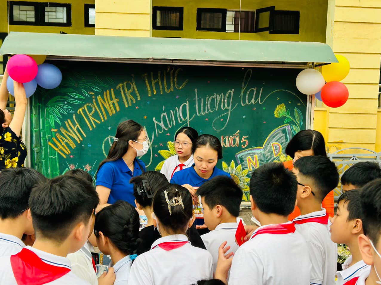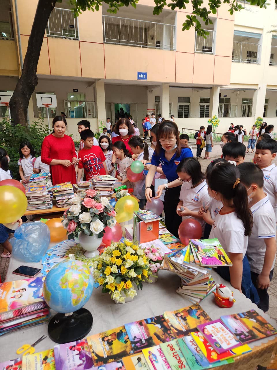 Với mục đích xây dựng và hình thành thói quen đọc sách cho các em học sinh, trong những năm học gần đây nhà trường đã chú trọng xây dựng và tổ chức các hoạt động đọc sách như: hình thành và duy trì thói quen “Đọc sách 15 phút đầu giờ” mỗi ngày, “Giới thiệu cuốn sách em yêu thích” hàng tuần, và mới đây nhất là cuộc thi “Đại sứ văn hóa đọc”.