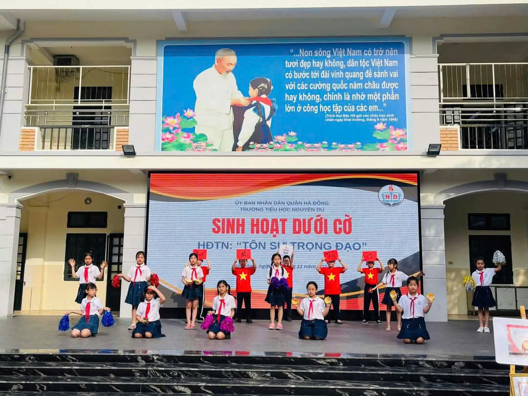🌹🌹 Sáng ngày 11/11 trong tiết SHDC, trường Tiểu học Nguyễn Du đã tổ chức chương trình “Kỷ niệm 70 năm ngày thành lập ngành Giáo dục Thủ đô và HĐTN “Tôn sư trọng đạo”. Trong chương trình thầy cô và học sinh toàn trường cùng nhau xem 1 đoạn video clip ngắn ghi lại dấu ấn hành trình 22 năm 1 chặng đường, với những thành tích đáng tự hào mà thầy trò nhà trường qua nhiều thế hệ đã đạt được.