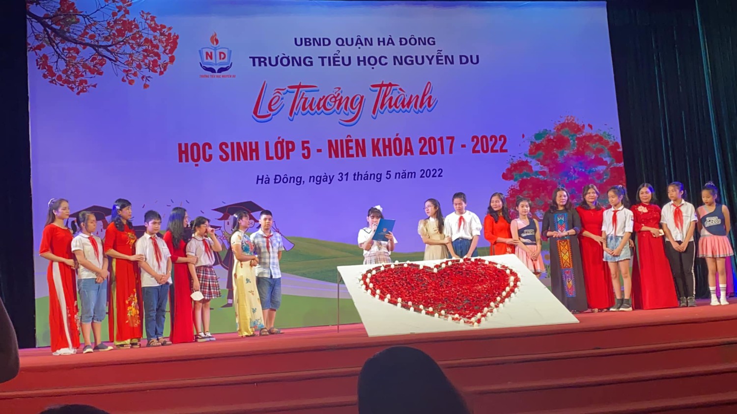 Sau 5 năm gắn bó với mái trường tiểu học, các em học sinh lớp 5 cũng đến lúc phải chia tay mái trường, chia tay bạn bè, thầy cô để chuẩn bị bước vào một bậc học mới, một ngôi trường mới. Hôm nay, ngày 31/5/2022 Trường Tiểu học Nguyễn Du đã tổ chức Lễ trưởng thành cho các em học sinh lớp 5. Đây sẽ là món quà đầy ý nghĩa đối với các bậc cha mẹ và là dấu ấn về sự trưởng thành của các em. 5 năm học tiểu học là những bước khởi đầu vững chắc giúp các con có một tương lai vững bền.