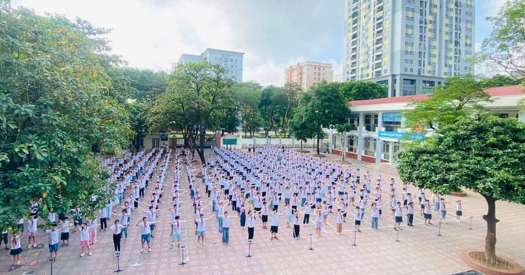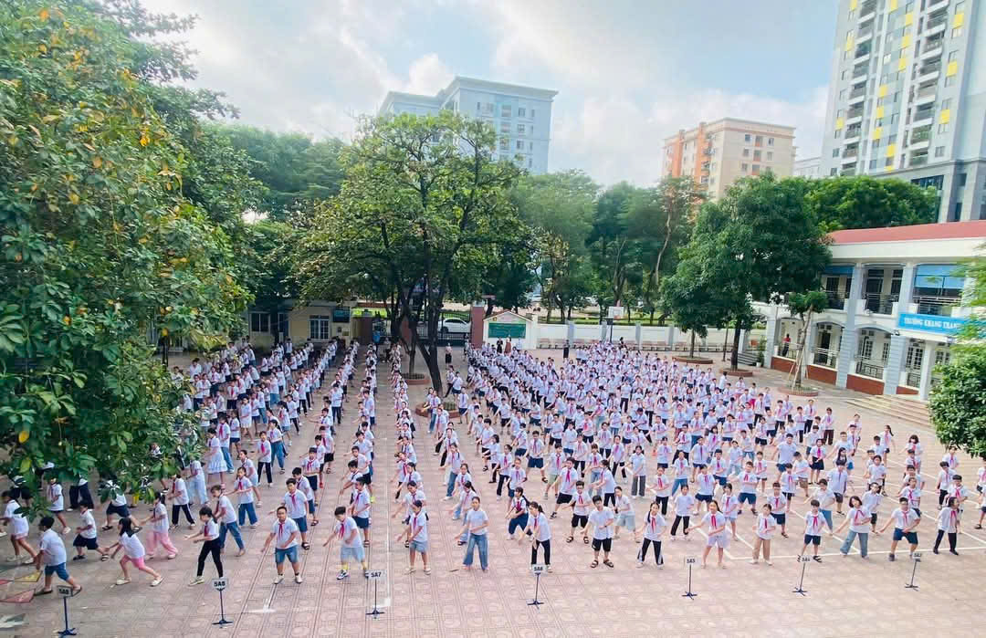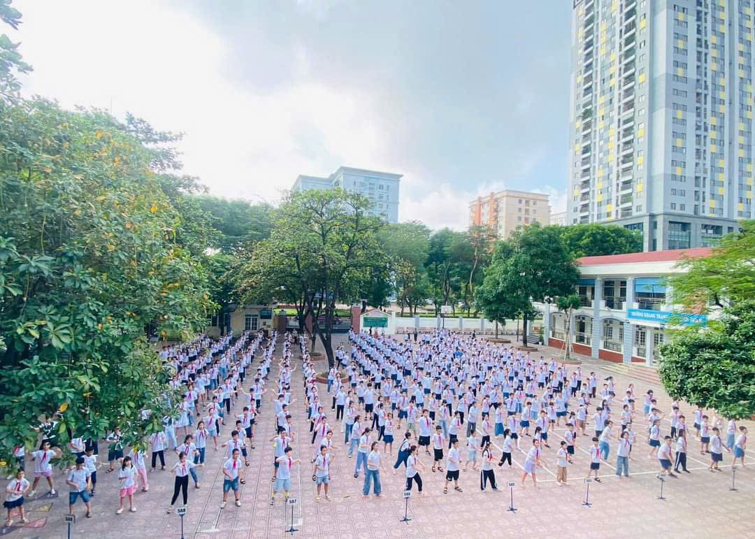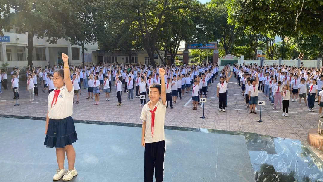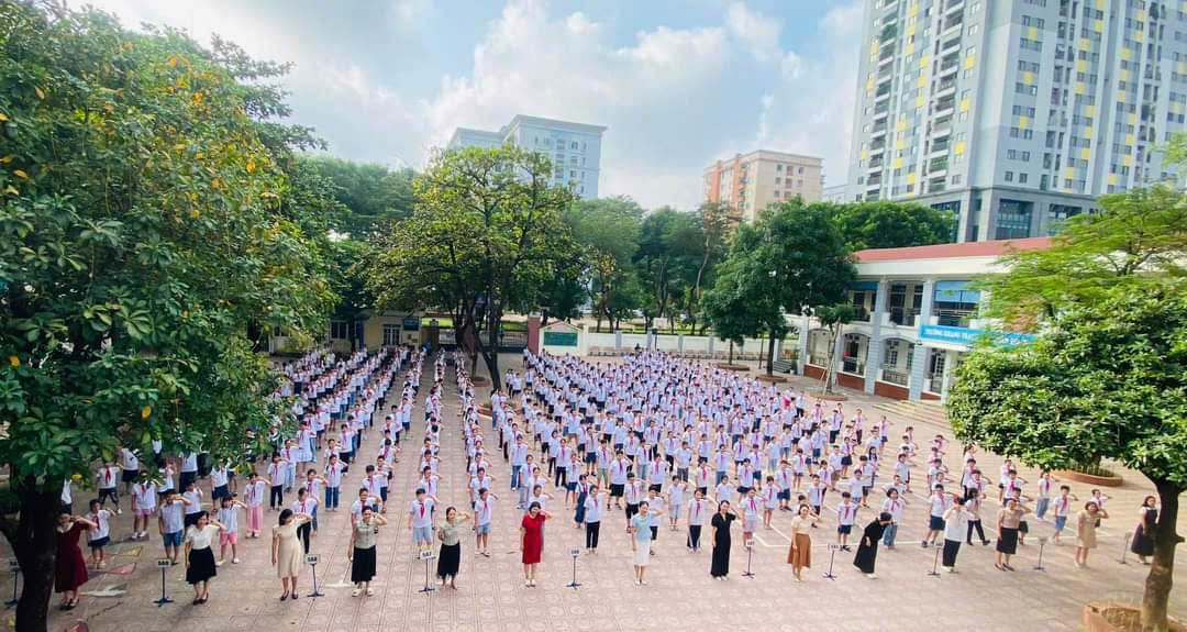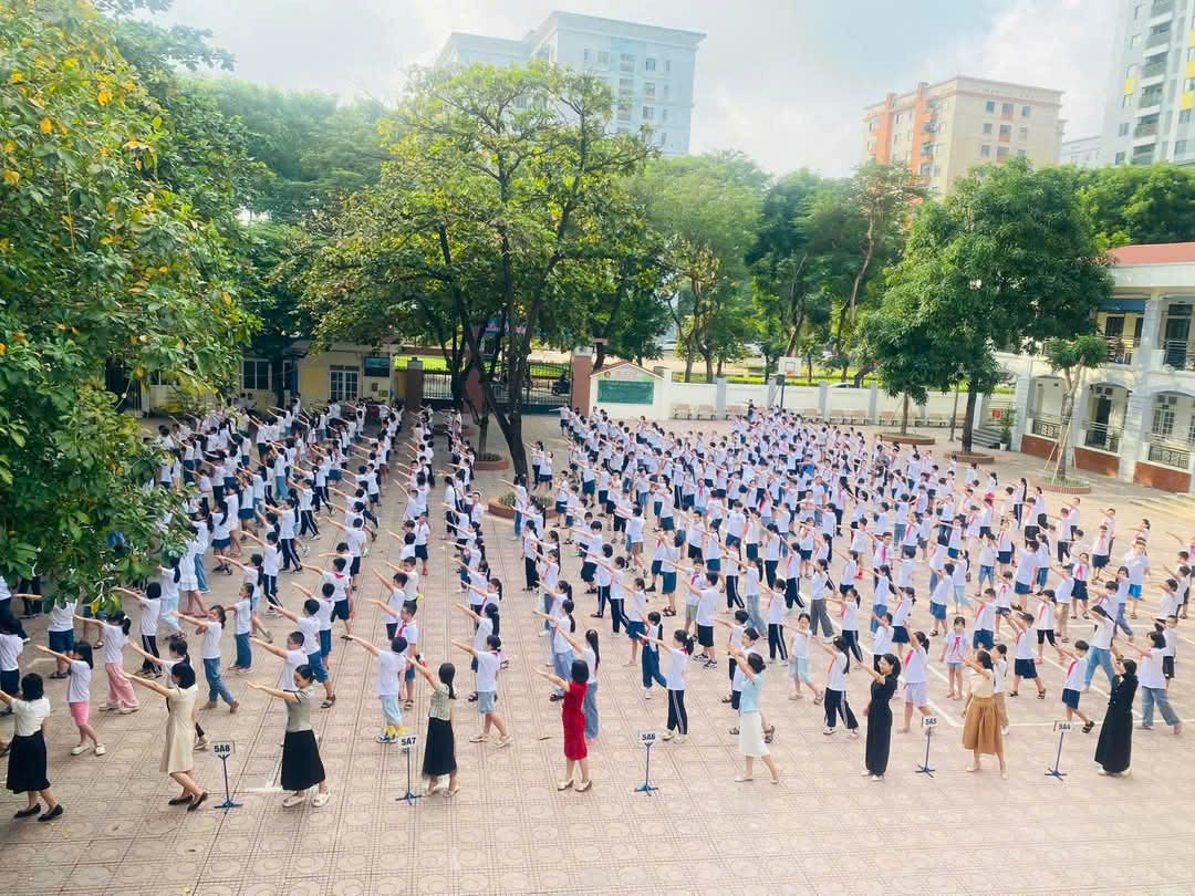 ⏰ Đúng 7h30’ theo lịch, học sinh náo nức ùa xuống sân trường, xếp thành hàng vào nơi quy định để cùng nhau hòa mình vào những điệu múa hát, thể dục sân trường vui tươi, sôi động. Đây là lúc các em được vận động, nhảy múa, tạo nguồn năng lượng tích cực để chuẩn bị cho tiết học đầu tiên và cũng là dịp để các em trở nên gần gũi, thân thiết với nhau hơn.
