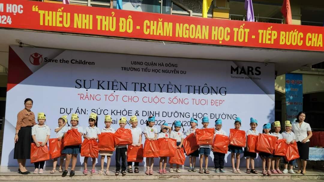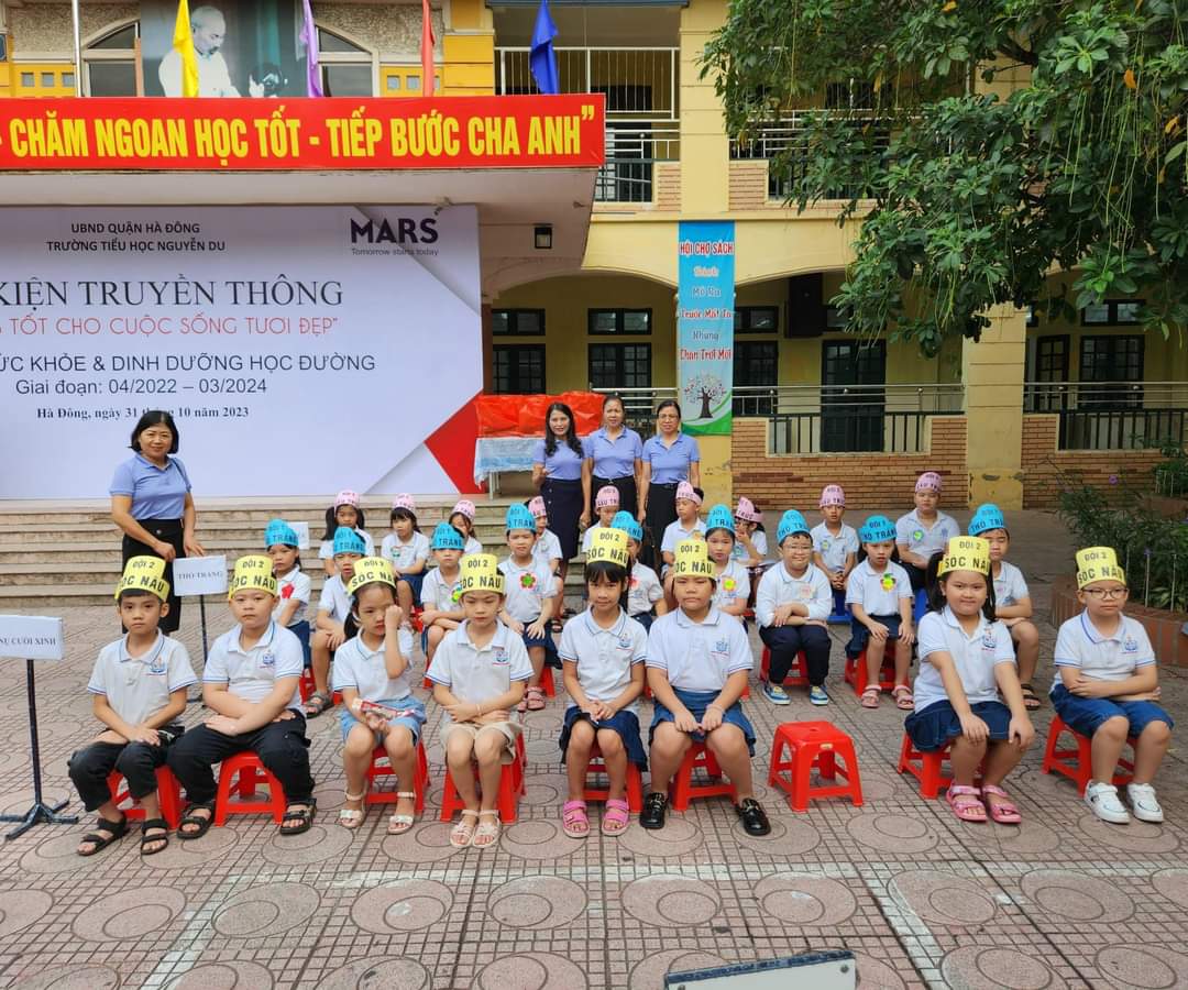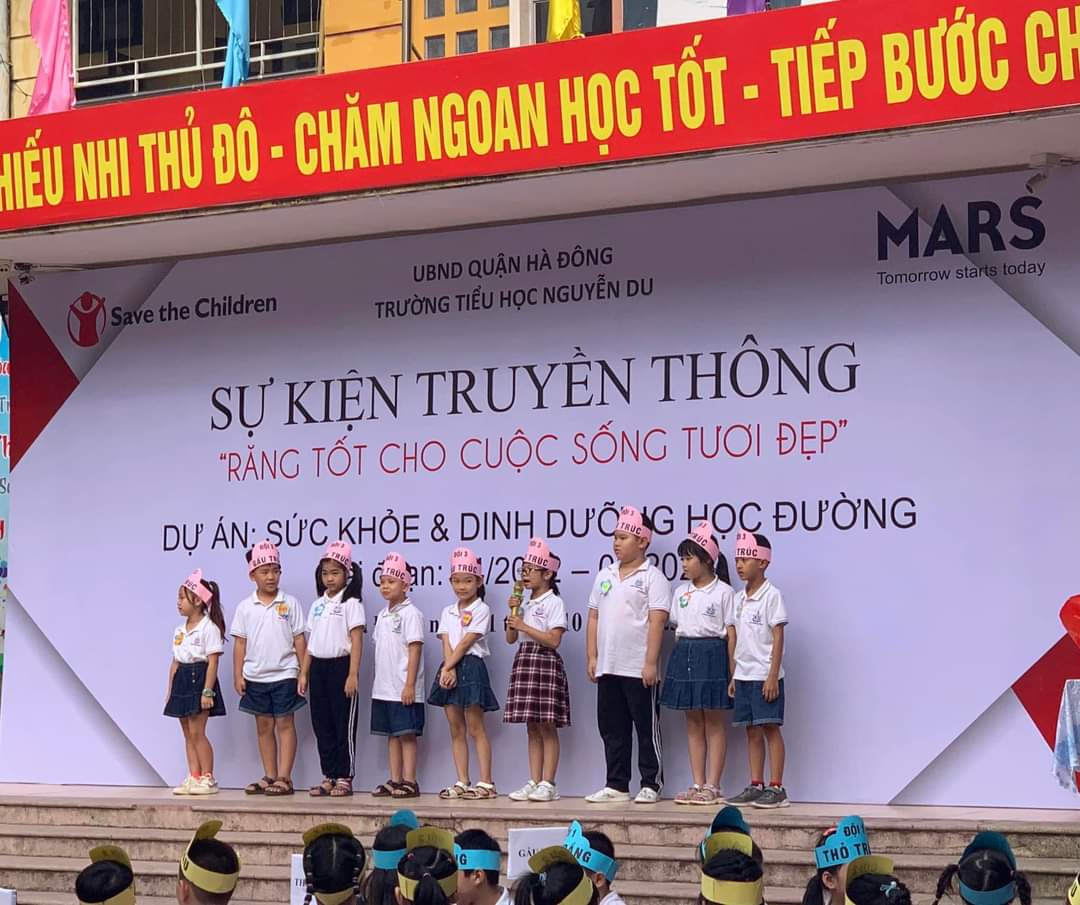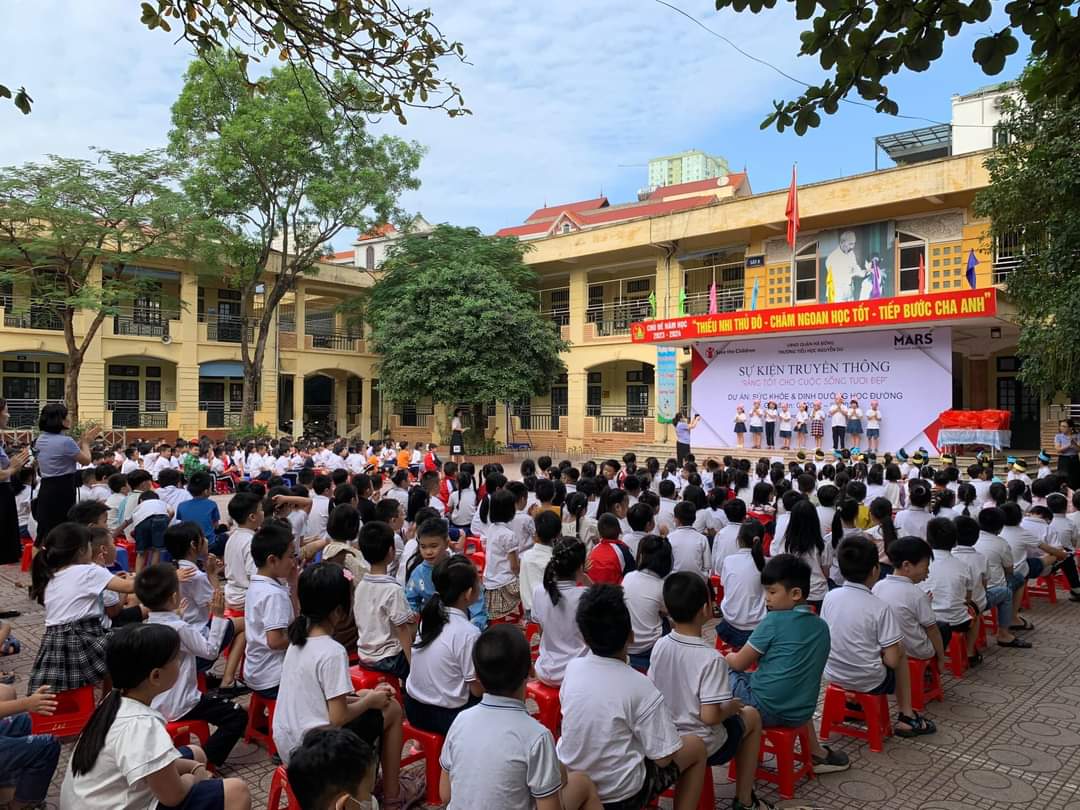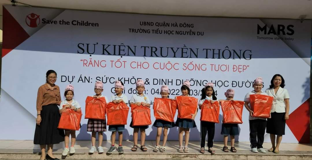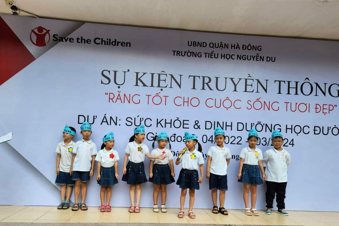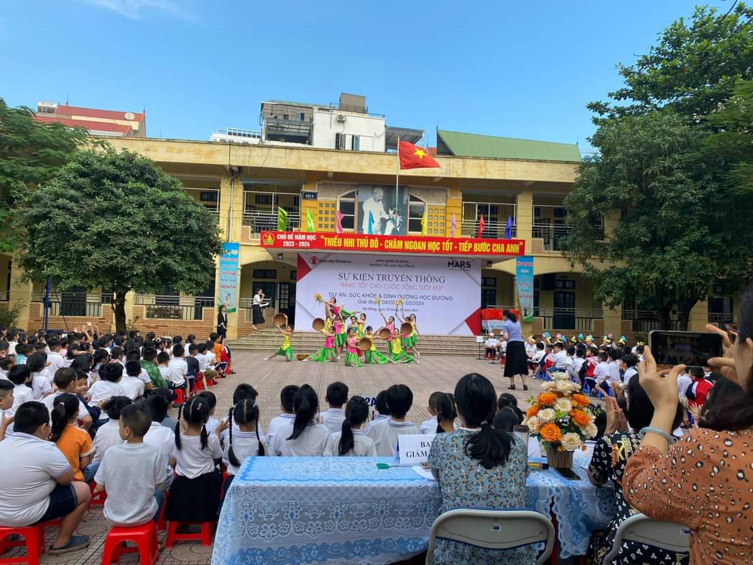 Sáng ngày 31/10/2023, trường Tiểu học Nguyễn Du đã tổ chức thành công Chương trình truyền thông sức khoẻ và dinh dưỡng học đường với Chủ đề: “Răng tốt cho cuộc sống tươi đẹp”. Tham dự sự kiện có các cô giáo trong Ban giám hiệu nhà trường, các thầy cô trong hội đồng sư phạm nhà trường, đặc biệt sự có mặt của hơn 400 em học sinh của khối lớp 2. BTC đã truyền thông bằng hình thức sân khấu hóa với 3 đội tham gia thi là “Thỏ Trắng”, “Sóc Nâu” và “Gấu Trúc”. Ba đội trải qua 3 phần chơi “Phần thi chào hỏi”, “Phần thi trả lời câu hỏi trắc nghiệm” và “Trả lời nhanh”, cùng phần thi giao lưu khán giả đã mang đến cho các con nhiều hứng khởi và vô cùng thích thú. Qua buổi truyền thông học sinh đã nhận thức được việc chăm sóc sức khỏe răng miệng đúng cách, giúp các em hiểu được tầm quan trọng của vệ sinh cá nhân đối với sức khỏe bản thân. Chúc cho các em luôn có hàm răng chắc khỏe với nụ cười tự tin tỏa nắng.