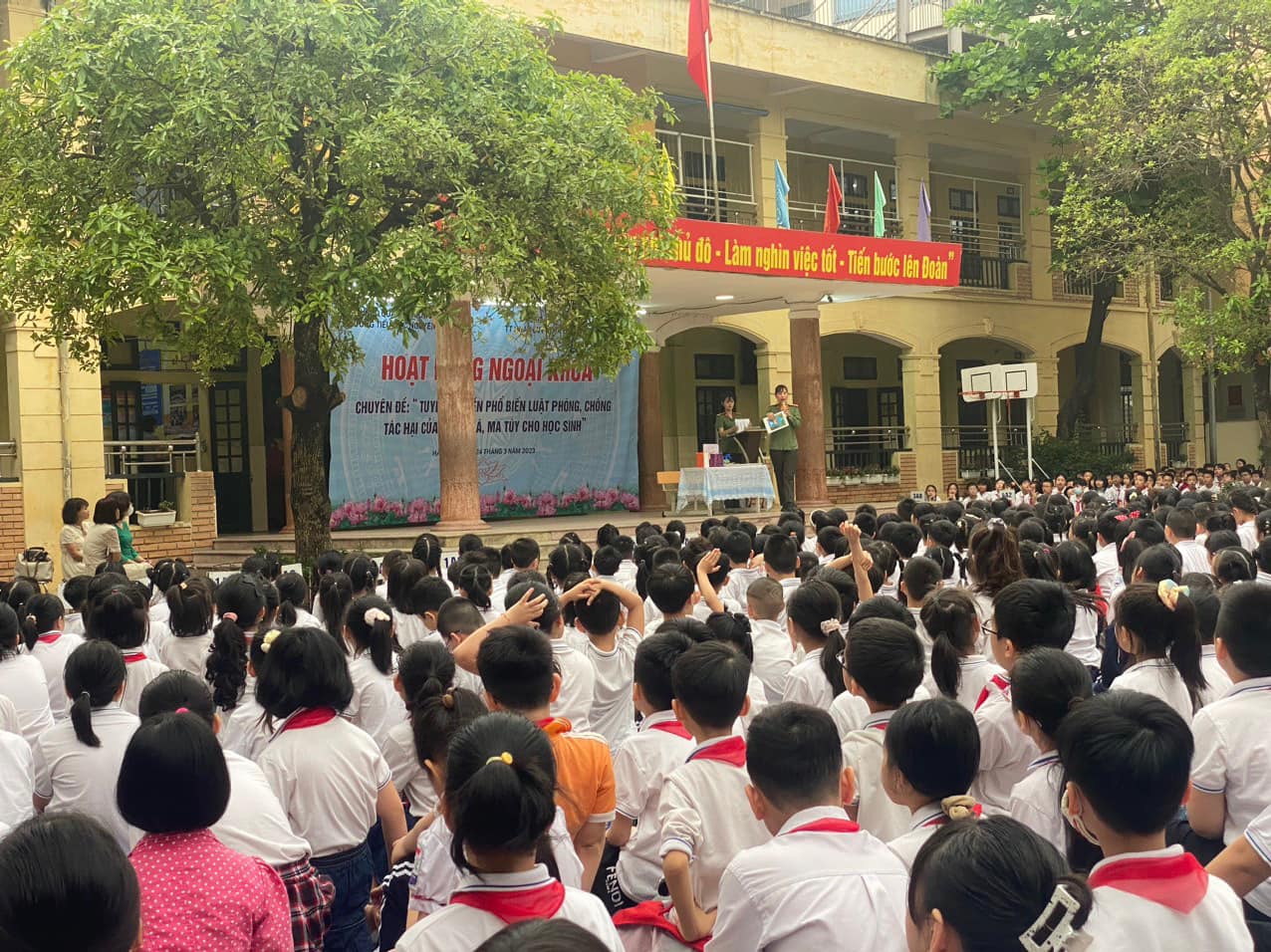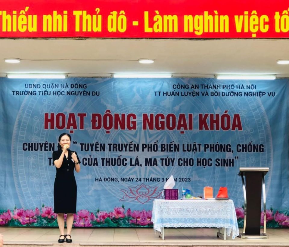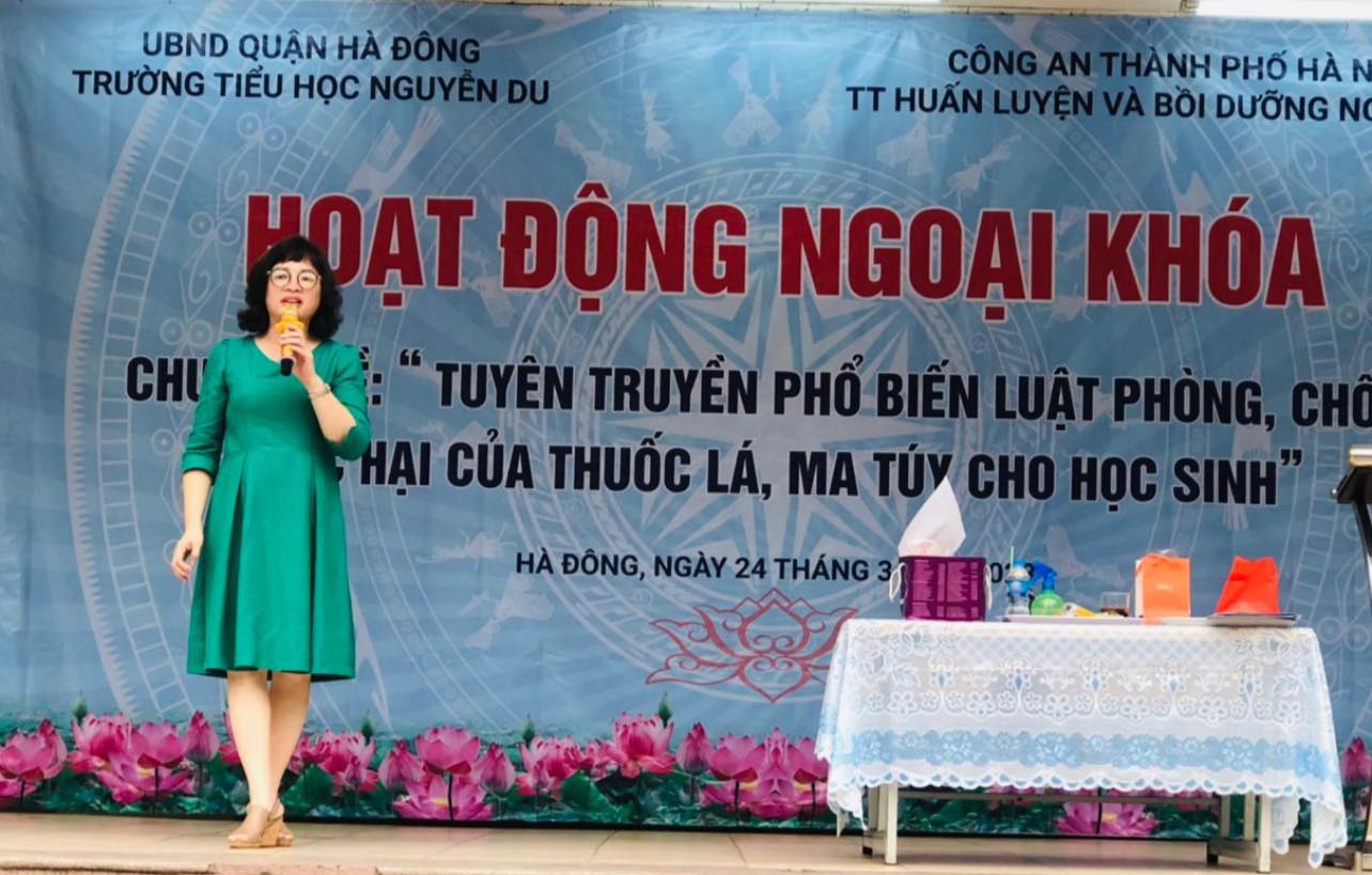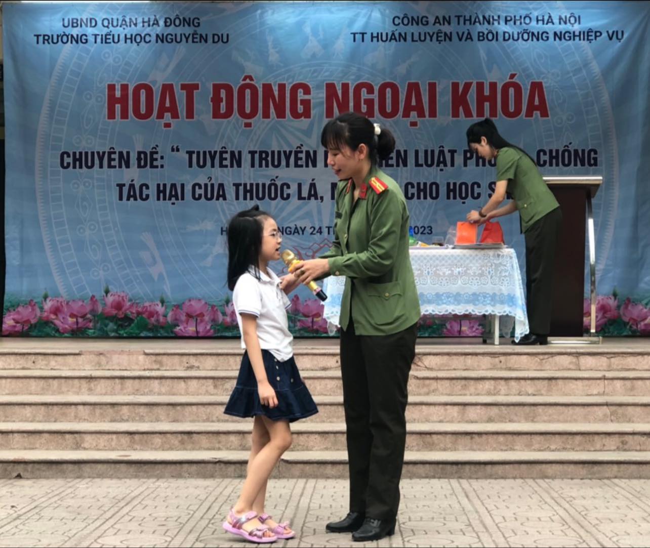 Sáng ngày 24/3 trường tiểu học Nguyễn Du phối hợp với Trung tâm huấn luyện và bồi dưỡng nghiệp vụ công an thành phố Hà Nội tổ chức buổi ngoại khóa “Tuyên truyền phổ biến Luật phòng, chống tác hại của ma túy, thuốc lá cho học sinh”.