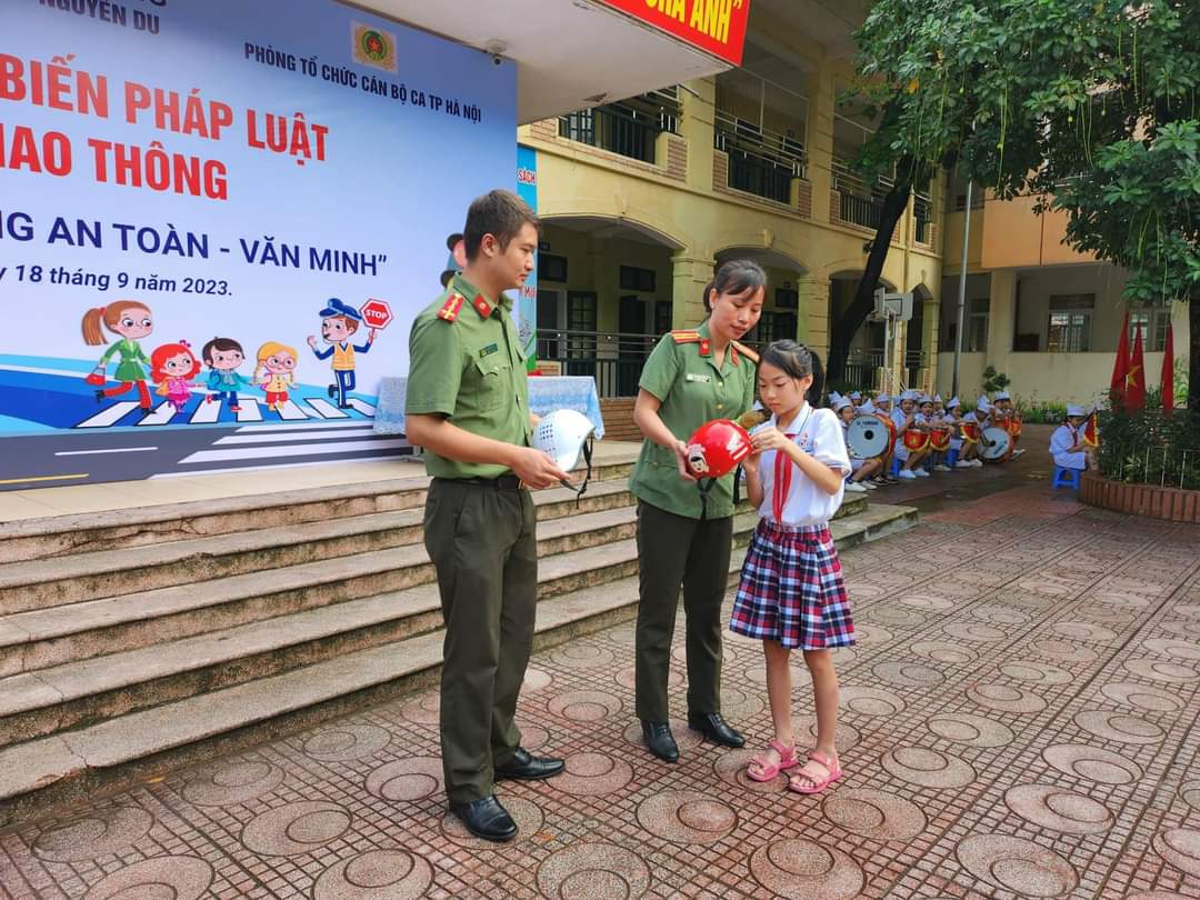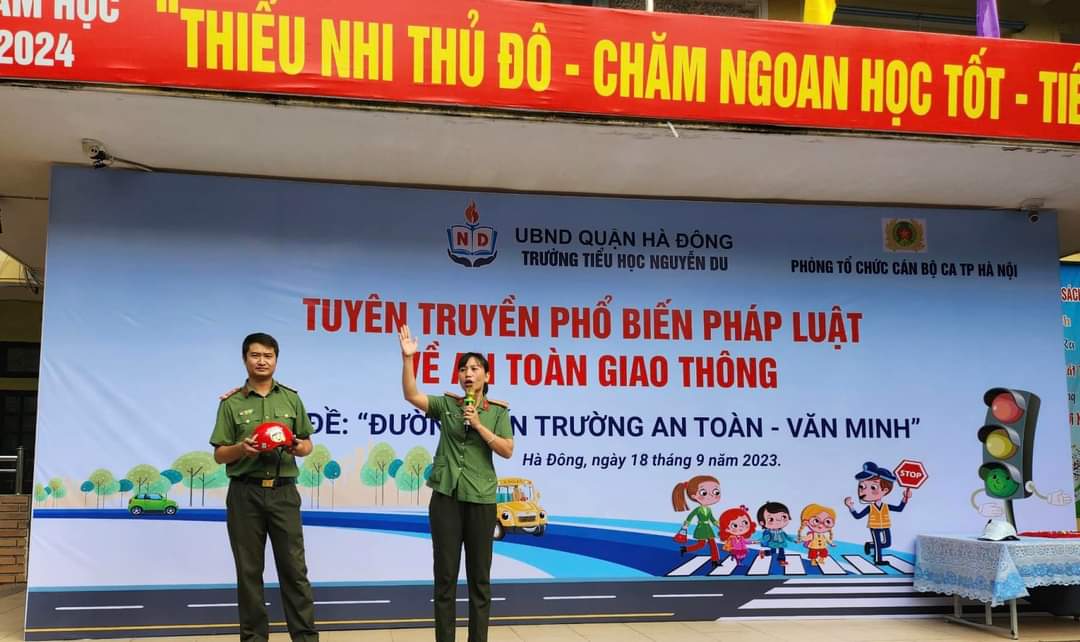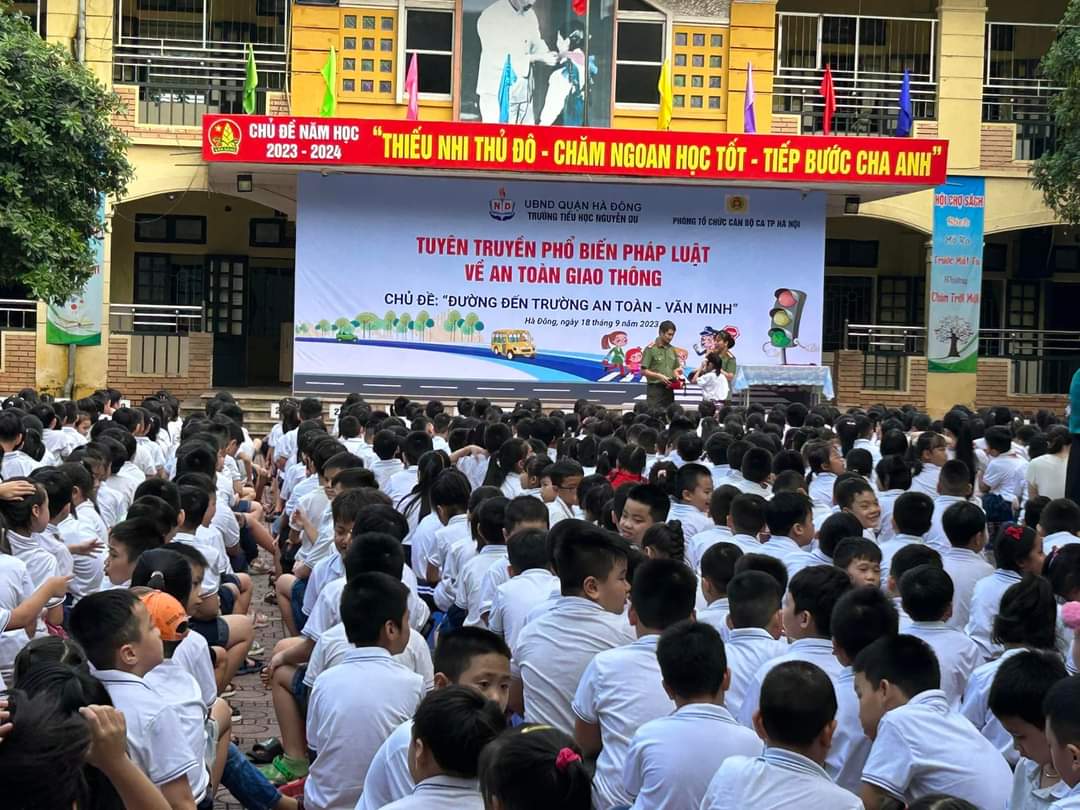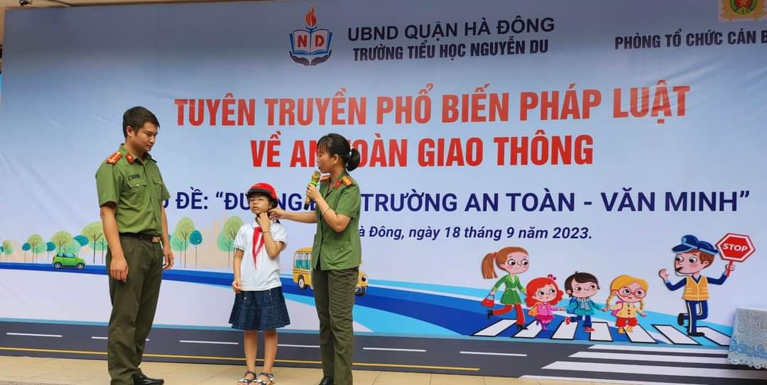 Với mong muốn xây dựng ý thức về an toàn giao thông cho các em học sinh - thế hệ tương lai của đất nước, để các em có thể tự bảo vệ mình tránh khỏi những tai nạn giao thông đáng tiếc và để các em trở thành những công dân, những tuyên truyền viên có ý thức tốt về an toàn giao thông. Sáng nay, ngày 18/9/2023 trường Tiểu học Nguyễn Du phối hợp với Phòng tổ chức cán bộ công an thành phố Hà Nội tổ chức buổi HĐNK “Tuyên truyền phổ biến pháp luật về An toàn giao thông” với chủ đề “Đường đến trường an toàn - văn minh”.