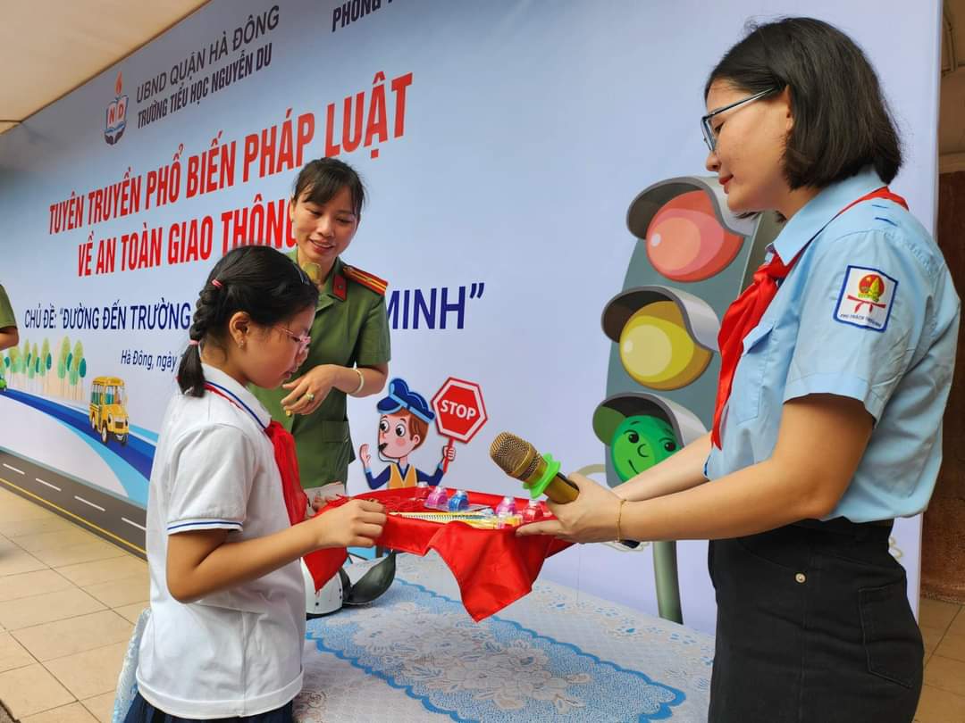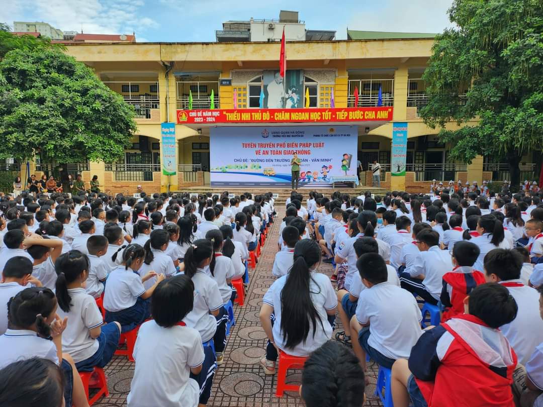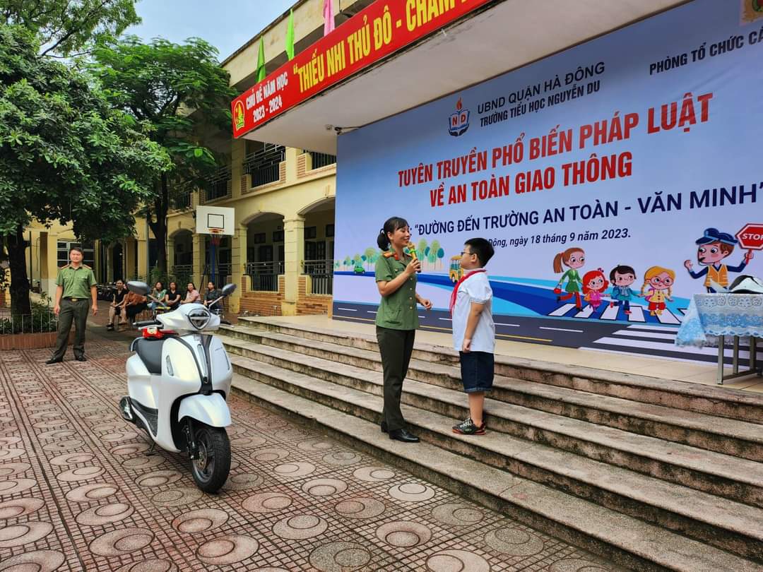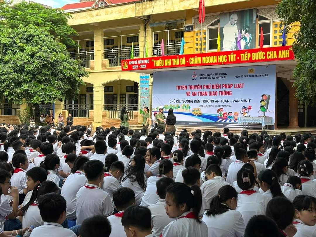 Với mong muốn xây dựng ý thức về an toàn giao thông cho các em học sinh - thế hệ tương lai của đất nước, để các em có thể tự bảo vệ mình tránh khỏi những tai nạn giao thông đáng tiếc và để các em trở thành những công dân, những tuyên truyền viên có ý thức tốt về an toàn giao thông. Sáng nay, ngày 18/9/2023 trường Tiểu học Nguyễn Du phối hợp với Phòng tổ chức cán bộ công an thành phố Hà Nội tổ chức buổi HĐNK “Tuyên truyền phổ biến pháp luật về An toàn giao thông” với chủ đề “Đường đến trường an toàn - văn minh”.