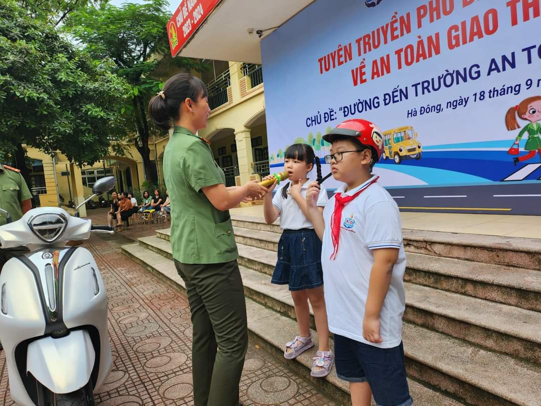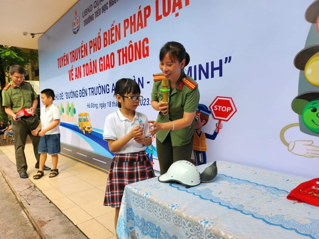 Tại buổi tuyên truyền, các em học sinh đã được thiếu tá Tạ Thị Hà Giang - chuyên viên phòng tổ chức cán bộ Công an thành phố Hà Nội tuyên truyền phổ biến những kiến thức, nội dung cơ bản của luật giao thông đường bộ, những kỹ năng ứng xử khi tham gia giao thông; Cách đi bộ đến trường an toàn; Cách đội mũ bảo hiểm đúng và các hình thức xử phạt đối với những lỗi thường gặp khi tham gia giao thông, như: không đội mũ bảo hiểm khi ngồi trên xe mô tô, xe gắn máy, trở quá số người quy định… Đây là hoạt động thiết thực nhằm góp phần nâng cao nhận thức, tạo sự chuyển biến mạnh mẽ trong ý thức chấp hành pháp luật về trật tự ATGT cho các em học sinh.
