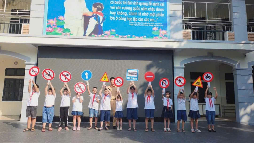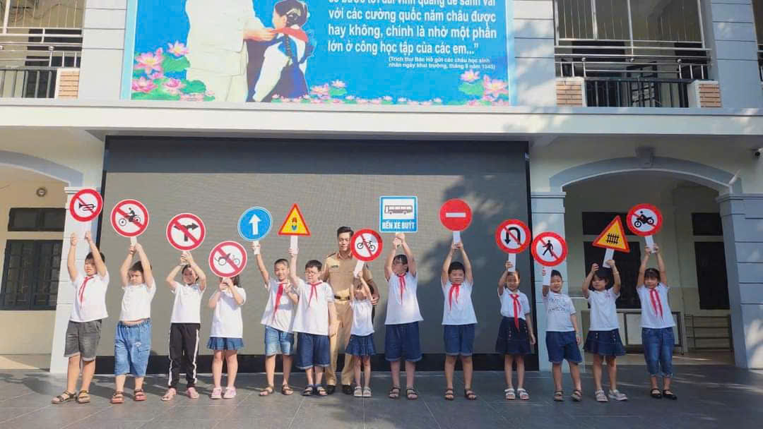 🌹🌻 Bên cạnh đó các em học sinh cũng được tham gia trải nghiệm làm cô, chú CSGT nhí phân đường và tìm hiểu về các biển báo giao thông cơ bản.