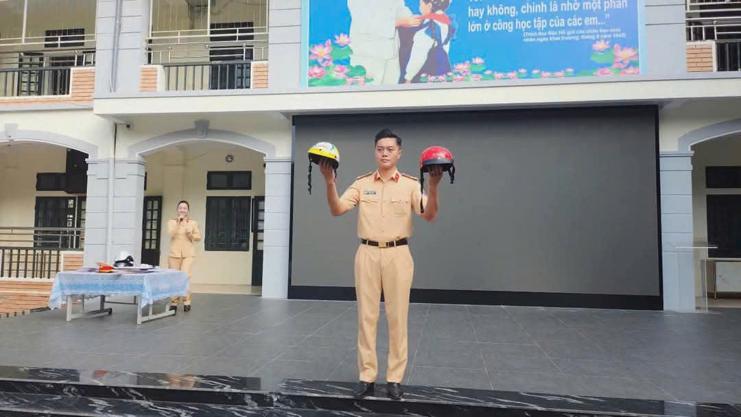 👏👏 Tại buổi tuyên truyền, các đồng chí phòng CSGT CATP Hà Nội đã tuyên truyền, hướng dẫn giáo viên, học sinh nhà trường một số kiến thức cơ bản về ATGT, như: Đi đúng làn đường, phần đường quy định. Phải đội mũ bảo hiểm, cài quai đúng quy cách, cách lựa chọn mũ bảo hiểm an toàn.