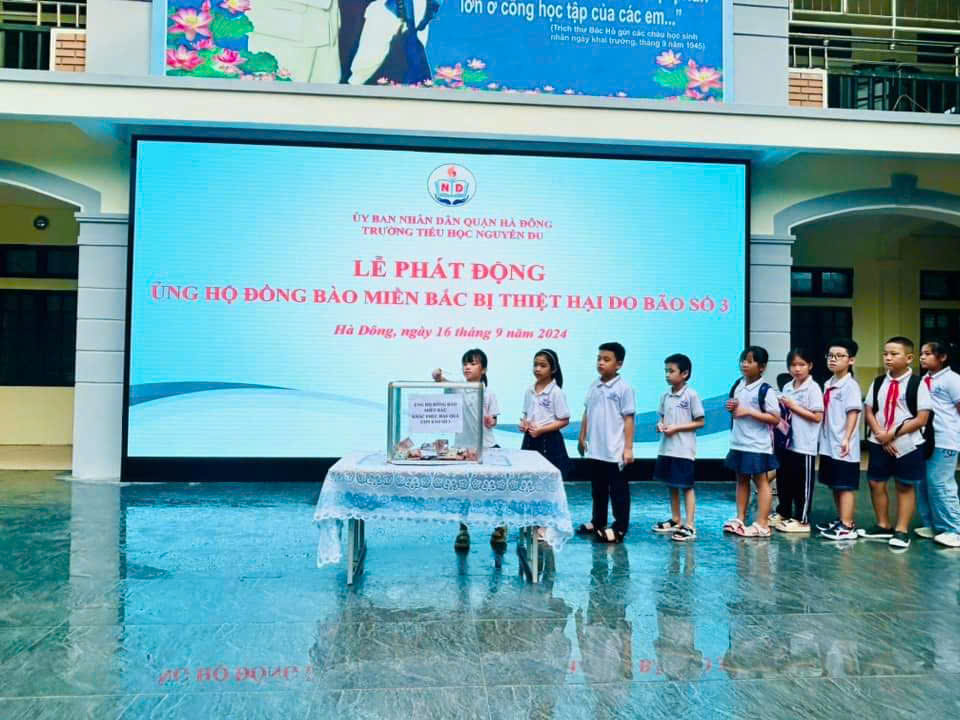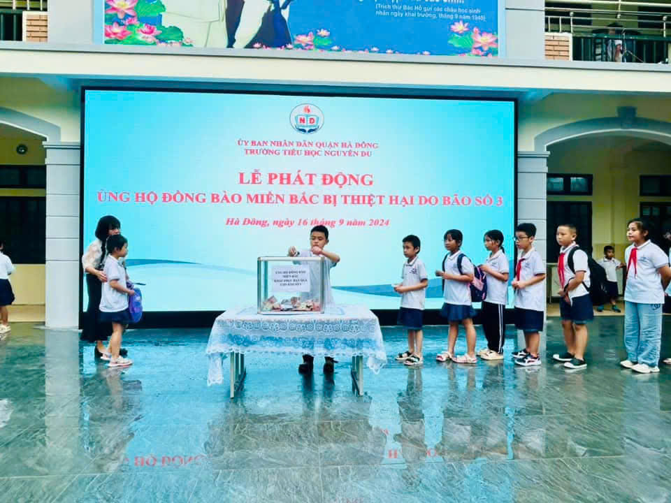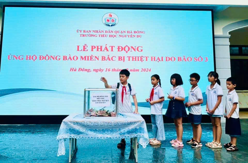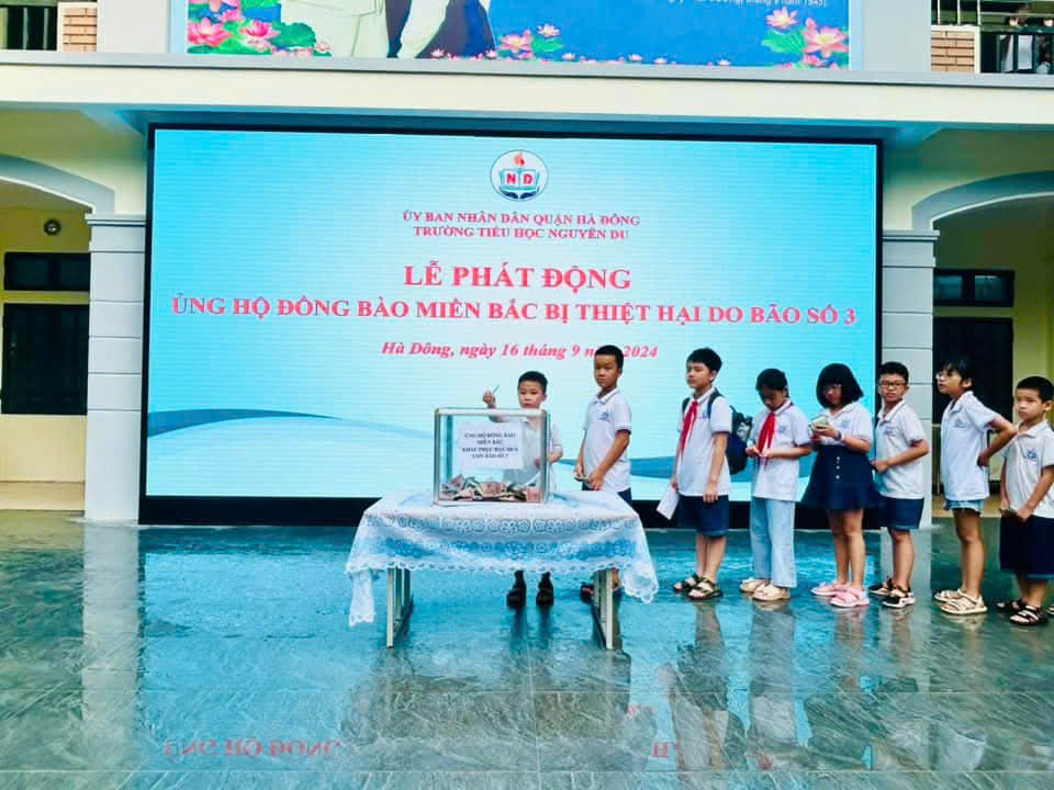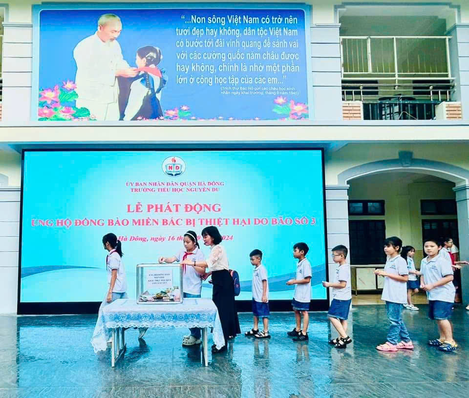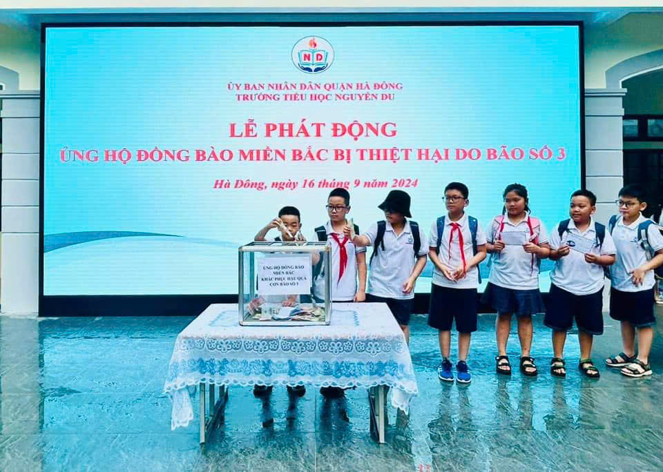 🌺🌺 Với tinh thần “Tương thân, tương ái”, "Tất cả vì miền Bắc thân yêu". Hưởng ứng lời kêu gọi của MTTQVN, phòng GDĐT quận Hà Đông, Hội đồng đội quận Hà Đông, nhà trường đã phát động tới quý cha mẹ học sinh, cán bộ nhà trường, cá nhân học sinh chung tay quyên góp hỗ trợ đồng bào miền Bắc khắc phục hậu quả sau cơn bão Yagi. Đây không chỉ là hành động thiết thực mà còn là cách nhà trường lan tỏa giá trị nhân ái và tinh thần cộng đồng tới các em.