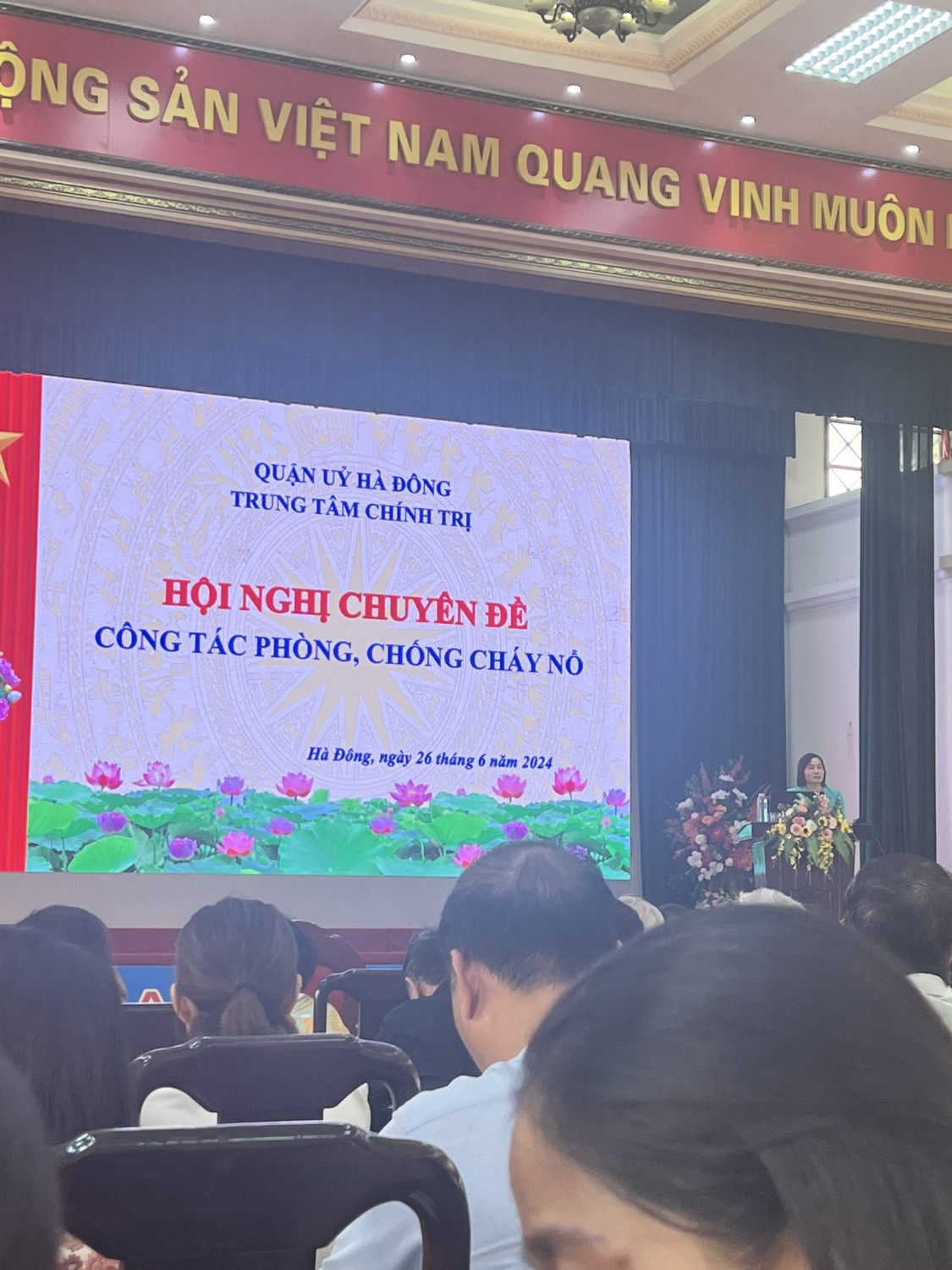Ngày 26/06/2024, Trung tâm Chính trị quận Hà Đông đã tổ chức Hội nghị chuyên đề về công tác phòng chống cháy nổ. Dưới đây là một số hình ảnh của buổi hội nghị chuyên đề: