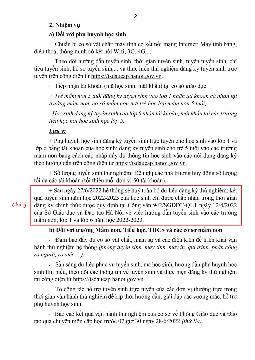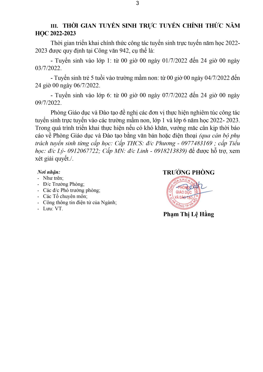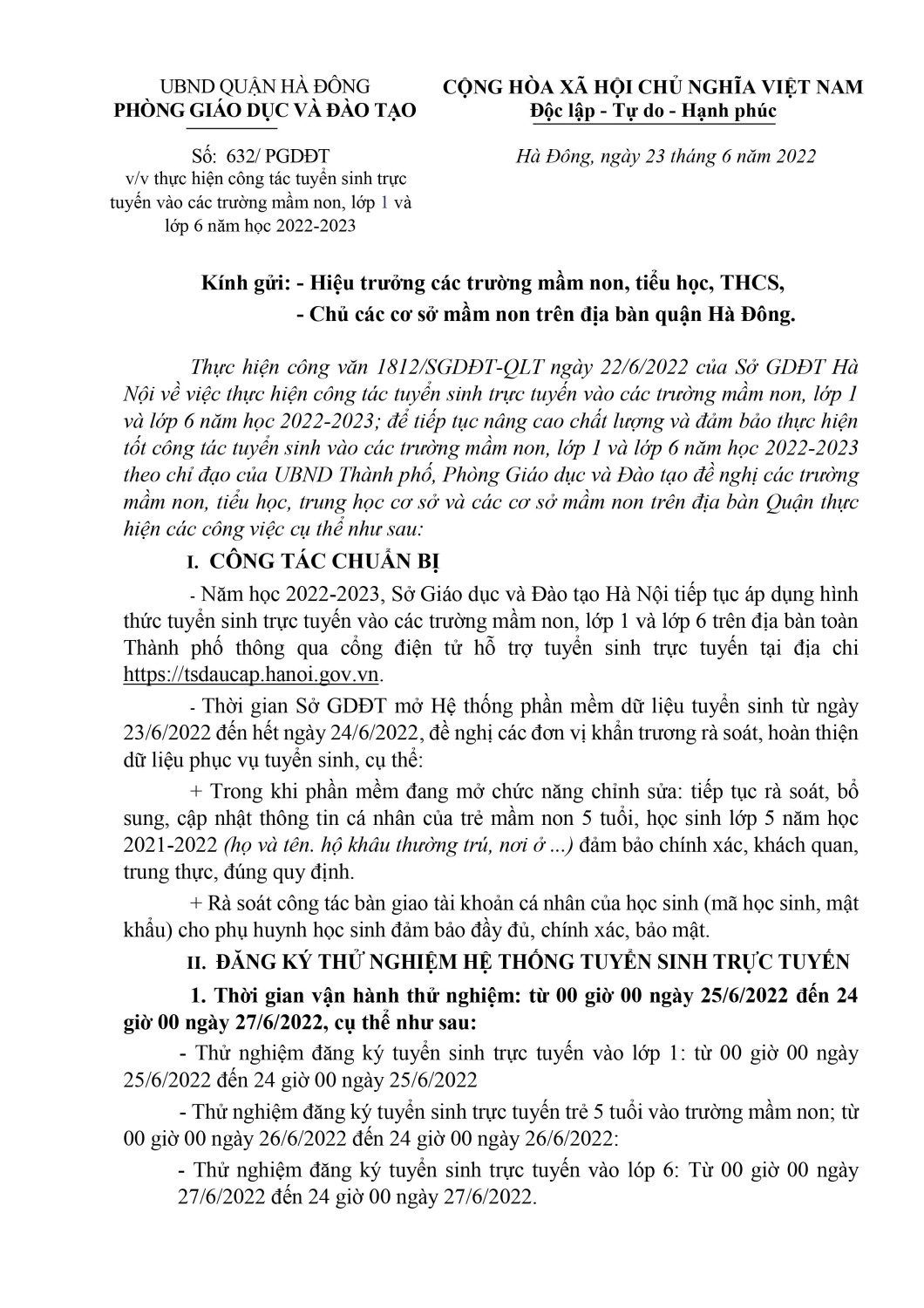 CV 632 thực hiện công tác tuyển sinh trực tuyến năm học 2022 - 2023