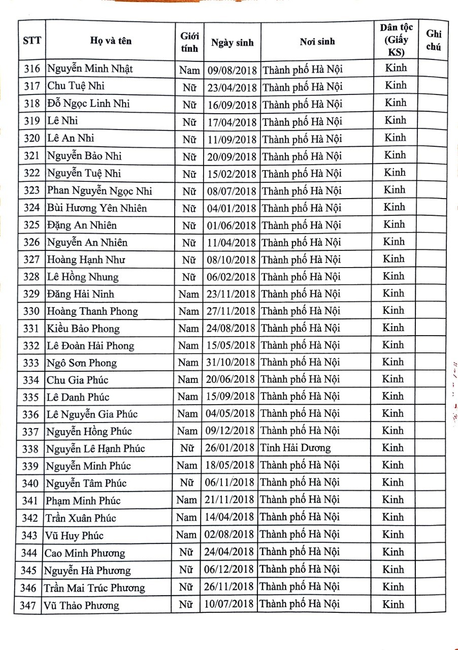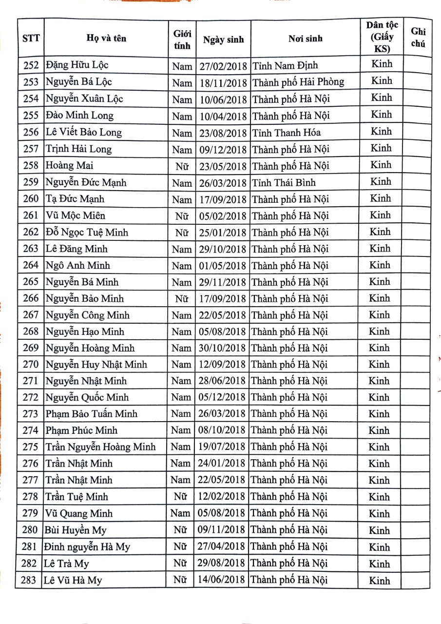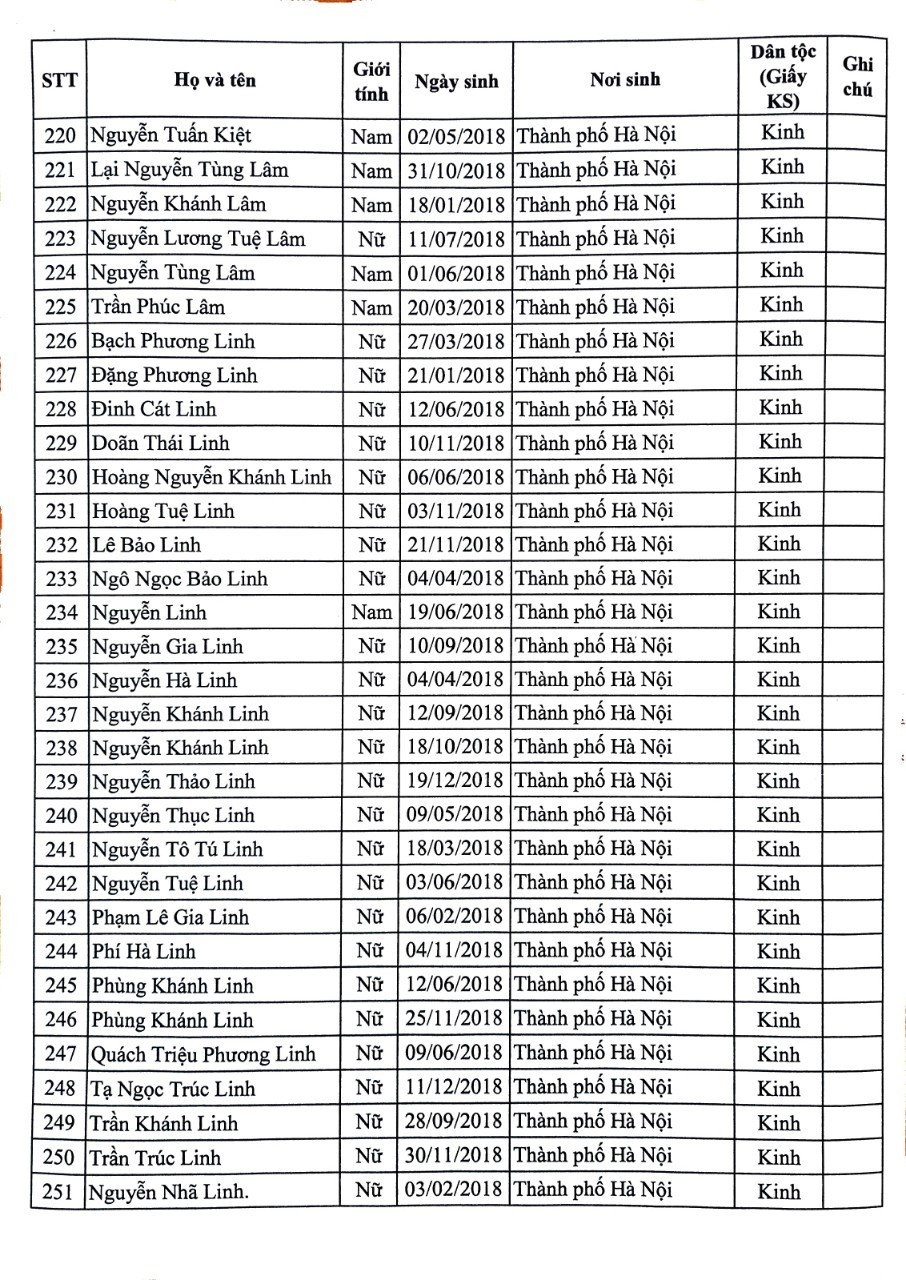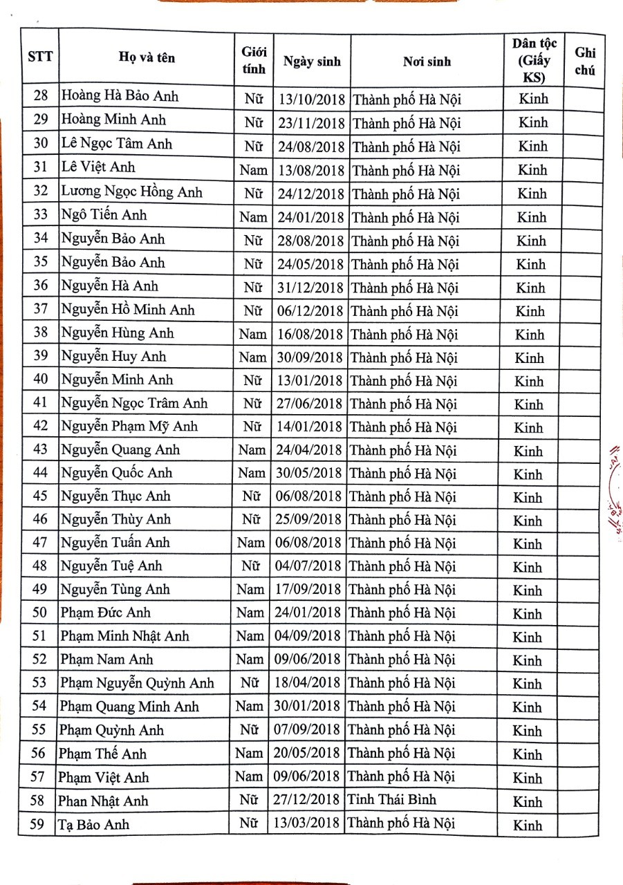 Danh sách học sinh trúng tuyển lớp 1 năm học 2024-2025 trường Tiểu học Nguyễn Du - Hà Đông: