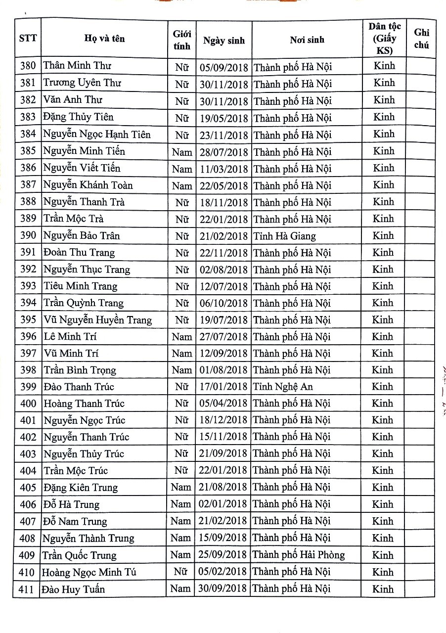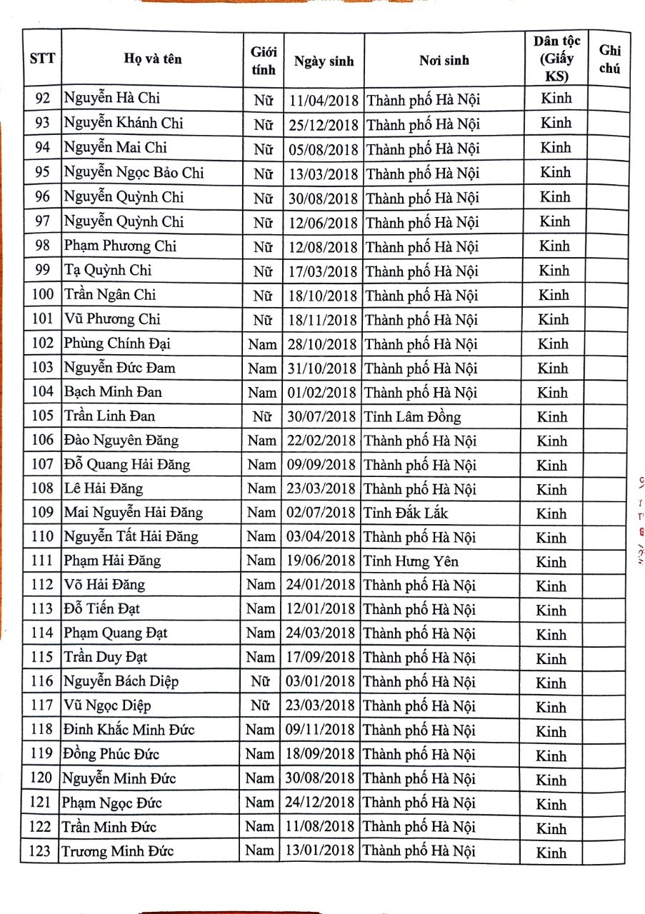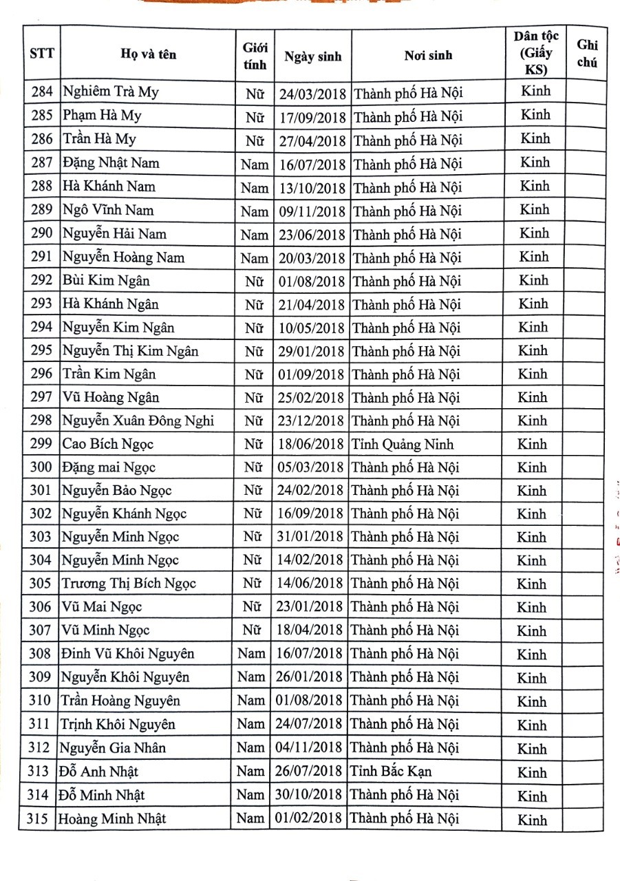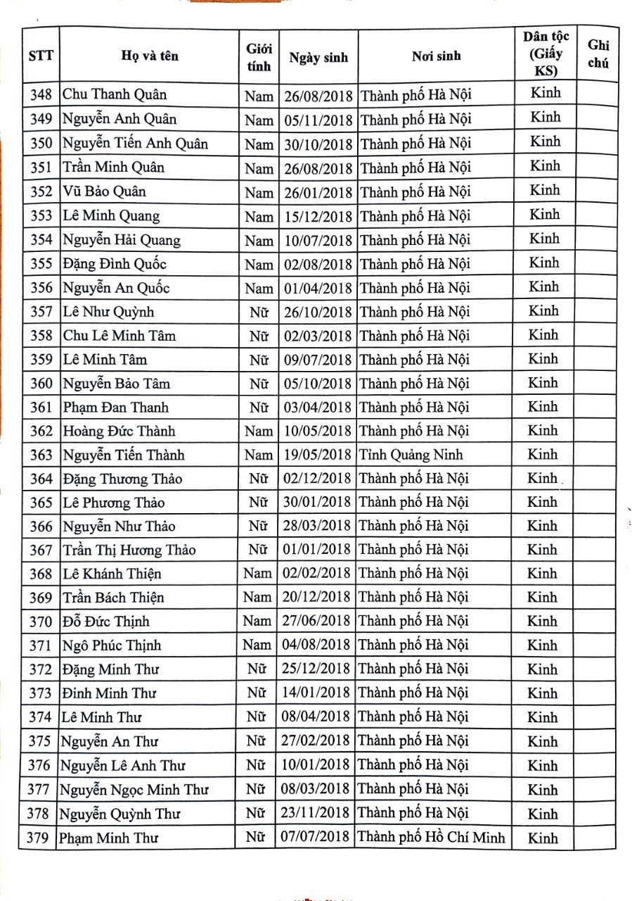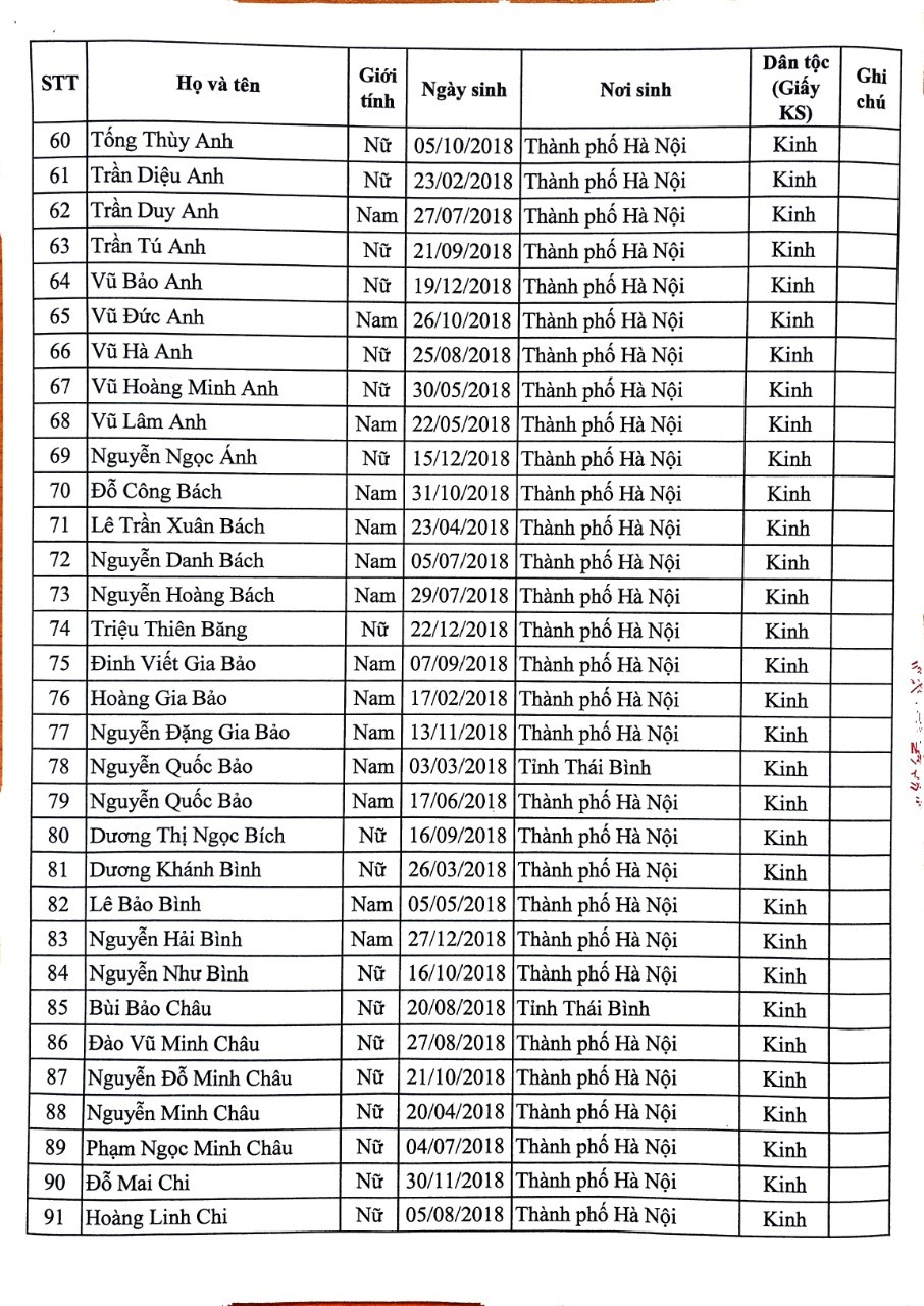 Danh sách học sinh trúng tuyển lớp 1 năm học 2024-2025 trường Tiểu học Nguyễn Du - Hà Đông: